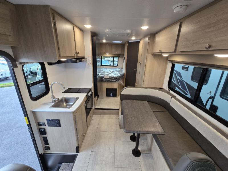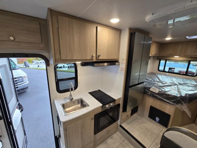 With each Leprechaun Class C gas motorhome by Coachmen you will enjoy "better" interior appointments, like the residential-sized beds, on-demand tankless water heater, and 15,000 BTU A/C. A dash radio and a backup monitor will let you easily navigate the open road like pro. There are also pleated night shades inside, along with premium vinyl flooring, a shower skylight, and USB charging ports to name a few comforts and conveniences. The Leprechaun is constructed with composite sidewall and cabover floor construction plus a seamless one-piece roof material for a durable motorhome made to last.
