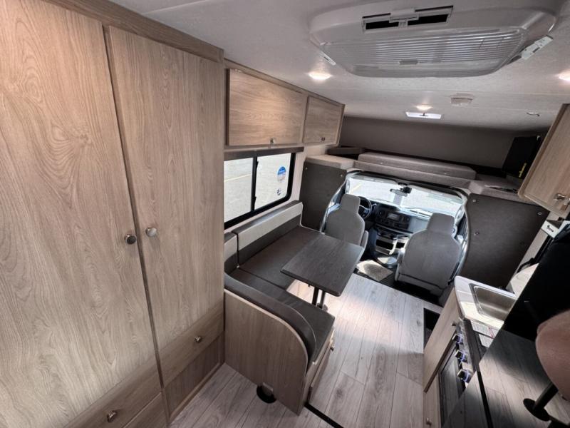 With each Leprechaun Class C gas motorhome by Coachmen you will enjoy "better" interior appointments, like the residential-sized beds, on-demand tankless water heater, and 15,000 BTU A/C. A dash radio and a backup monitor will let you easily navigate the open road like pro. There are also pleated night shades inside, along with premium vinyl flooring, a shower skylight, and USB charging ports to name a few comforts and conveniences. The Leprechaun is constructed with composite sidewall and cabover floor construction plus a seamless one-piece roof material for a durable motorhome made to last.