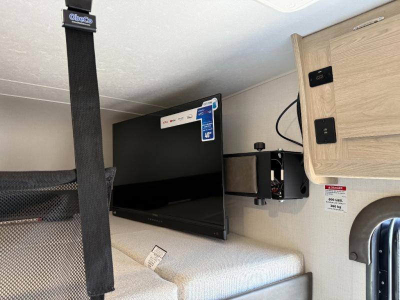 You will feel so lucky traveling down the highway in this Leprechaun Class C gas motorhome! The spacious J-lounge can be used for dining, sleeping, or game night, and the kids will love the bunk over cab that includes a swing-arm TV! The Murphy queen bed is both comfortable and functional since this area can also be a multi-function bedroom/cargo bay area once it's folded up during the day. You will also be able to offer a full bathroom to anyone that stops by.