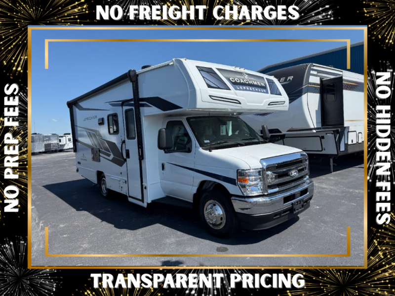 With each Leprechaun Class C gas motorhome by Coachmen you will enjoy "better" interior appointments, like the residential-sized beds, on-demand tankless water heater, and 15,000 BTU A/C. A dash radio and a backup monitor will let you easily navigate the open road like pro. There are also pleated night shades inside, along with premium vinyl flooring, a shower skylight, and USB charging ports to name a few comforts and conveniences. The Leprechaun is constructed with composite sidewall and cabover floor construction plus a seamless one-piece roof material for a durable motorhome made to last.