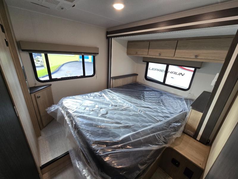 With each Leprechaun Class C gas motorhome by Coachmen you will enjoy "better" interior appointments, like the residential-sized beds, on-demand tankless water heater, and 15,000 BTU A/C. A dash radio and a backup monitor will let you easily navigate the open road like pro. There are also pleated night shades inside, along with premium vinyl flooring, a shower skylight, and USB charging ports to name a few comforts and conveniences. The Leprechaun is constructed with composite sidewall and cabover floor construction plus a seamless one-piece roof material for a durable motorhome made to last.