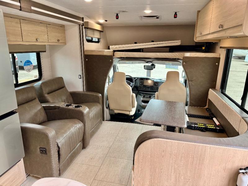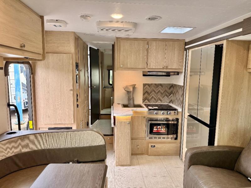 With each Leprechaun Class C gas motorhome by Coachmen you will enjoy "better" interior appointments, like the residential-sized beds, on-demand tankless water heater, and 15,000 BTU A/C. A dash radio and a backup monitor will let you easily navigate the open road like pro. There are also pleated night shades inside, along with premium vinyl flooring, a shower skylight, and USB charging ports to name a few comforts and conveniences. The Leprechaun is constructed with composite sidewall and cabover floor construction plus a seamless one-piece roof material for a durable motorhome made to last.