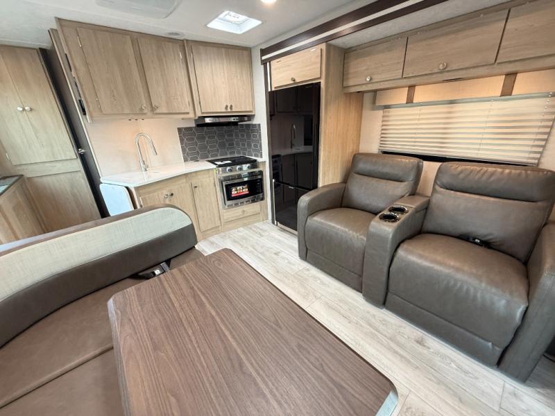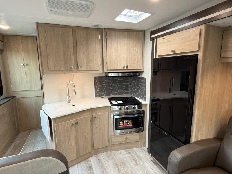 With each Leprechaun Class C gas motorhome by Coachmen you will enjoy "better" interior appointments, like the residential-sized beds, on-demand tankless water heater, and 15,000 BTU A/C. A 7" touchscreen dash radio with CarPlay and a backup monitor will let you easily navigate the open road like pro. The Leprechaun is constructed with composite sidewall and cabover floor construction plus a seamless one-piece roof material for a durable motorhome made to last.