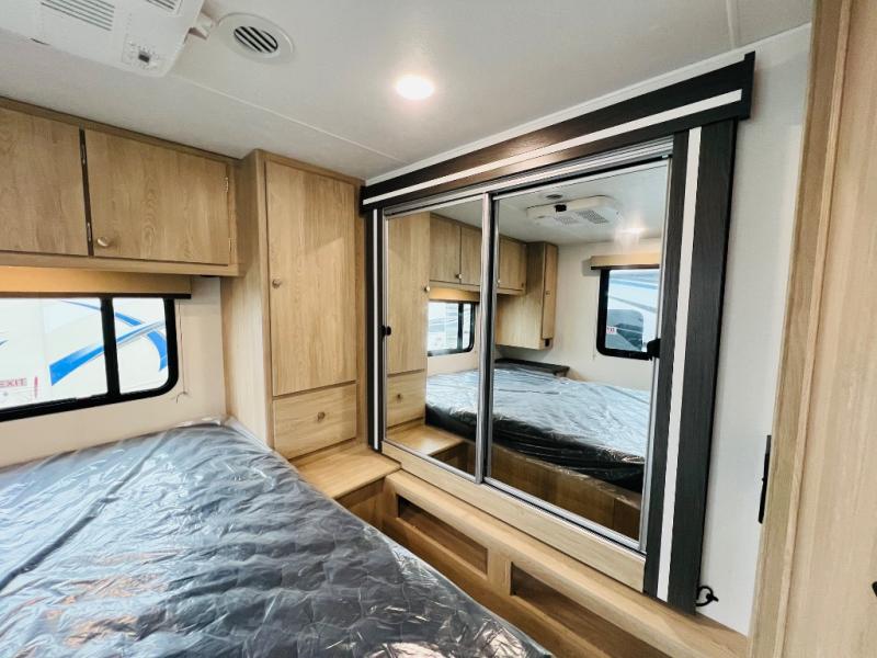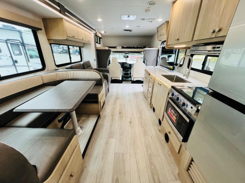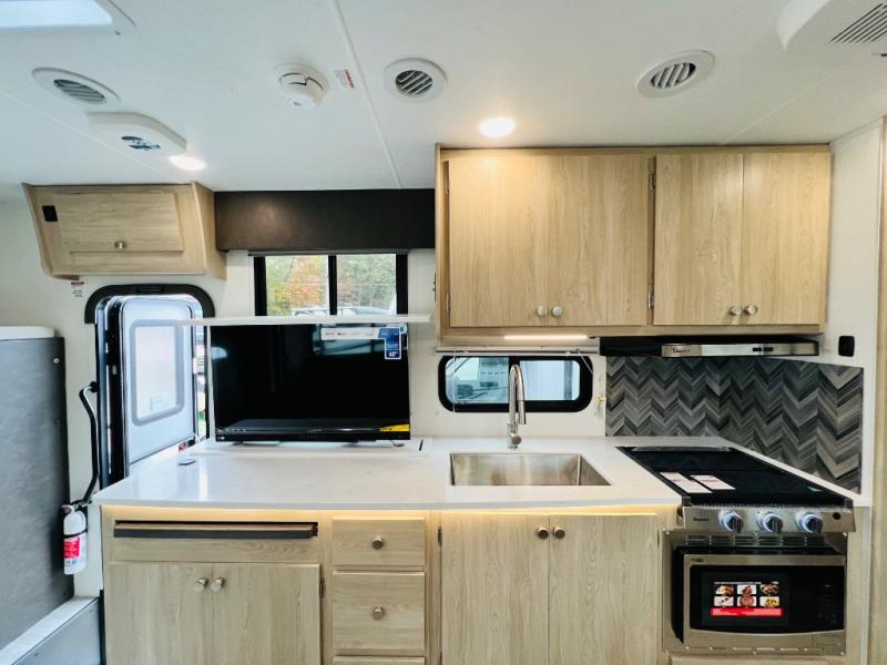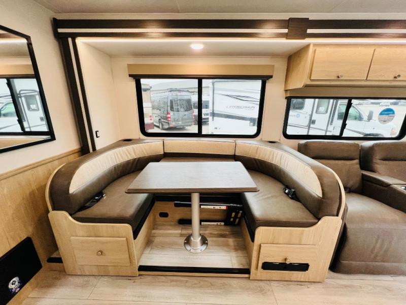 With each Leprechaun Class C gas motorhome by Coachmen you will enjoy "better" interior appointments, like the residential-sized beds, on-demand tankless water heater, and 15,000 BTU A/C. A dash radio and a backup monitor will let you easily navigate the open road like pro. There are also pleated night shades inside, along with premium vinyl flooring, a shower skylight, and USB charging ports to name a few comforts and conveniences. The Leprechaun is constructed with composite sidewall and cabover floor construction plus a seamless one-piece roof material for a durable motorhome made to last.