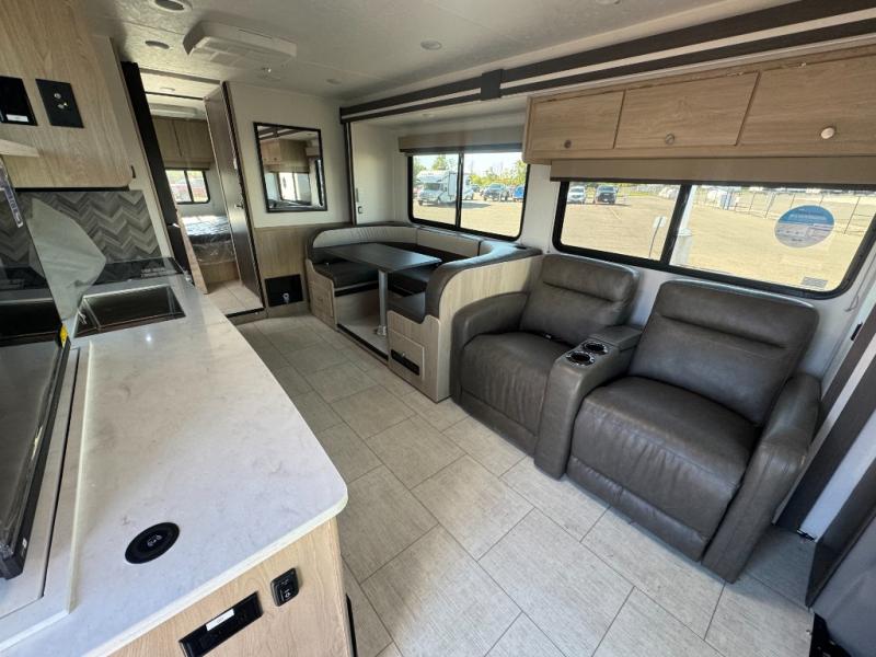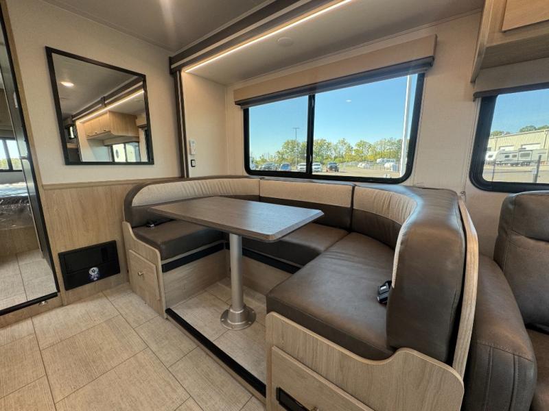 With each Leprechaun Class C gas motorhome by Coachmen you will enjoy "better" interior appointments, like the residential-sized beds, on-demand tankless water heater, and 15,000 BTU A/C. A dash radio and a backup monitor will let you easily navigate the open road like pro. There are also pleated night shades inside, along with premium vinyl flooring, a shower skylight, and USB charging ports to name a few comforts and conveniences. The Leprechaun is constructed with composite sidewall and cabover floor construction plus a seamless one-piece roof material for a durable motorhome made to last.