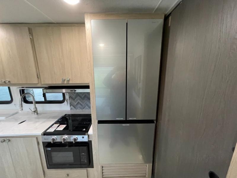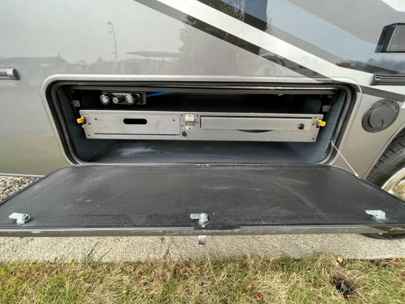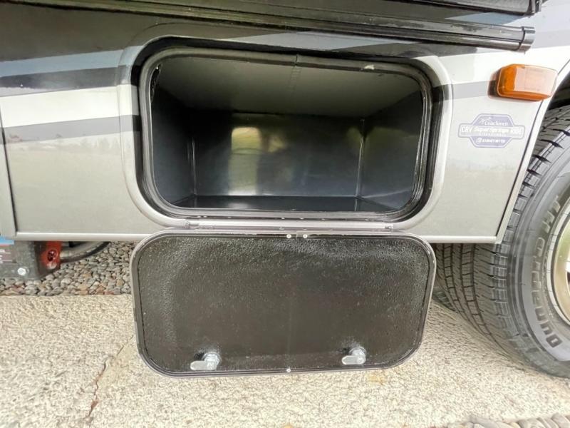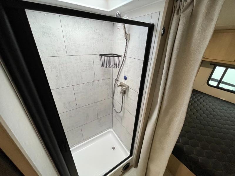 You'll have the time of your life in this Leprechaun Class C gas motorhome! There is a rear private bedroom with a queen-size bed and a wardrobe slide, and the bedroom is right next to the bathroom for convenience. Here you'll find a private toilet and sink with the shower right across the hall, and you can close off this space to make one big bathroom if you want! Out in the main living area, there is a large slide that holds the U-shaped dinette and sofa. These pieces of furniture sit directly across from the kitchen so that you can chat with the chef while preparing meals on the three-burner range or in the microwave. If you enjoy cooking outdoors, you might want to choose the optional camp kitchen!