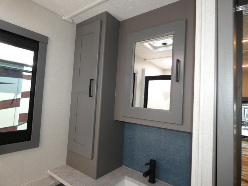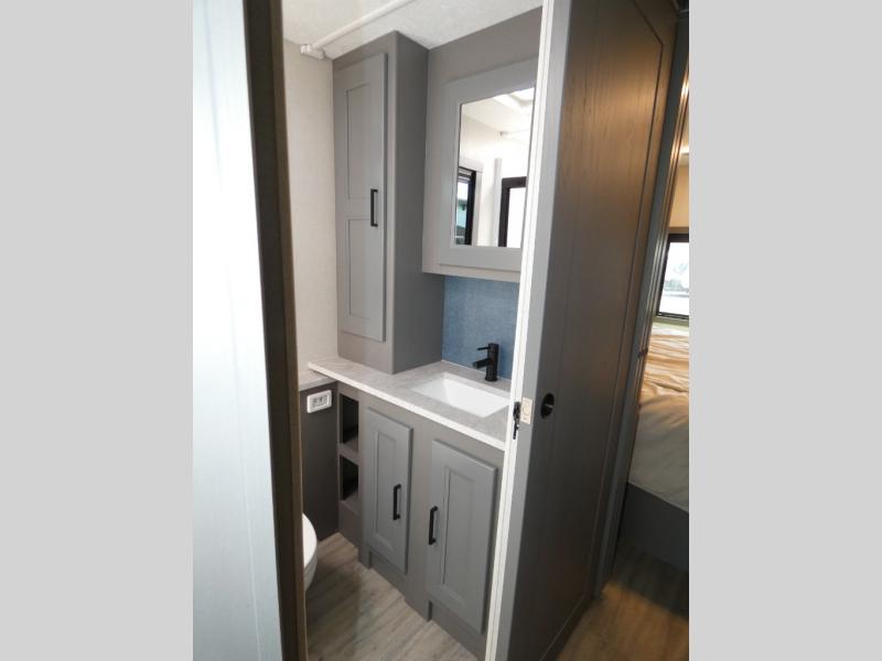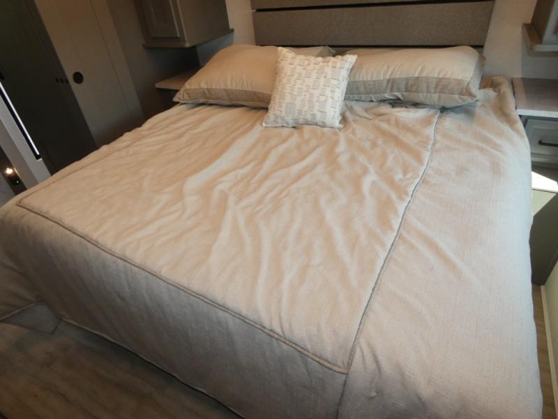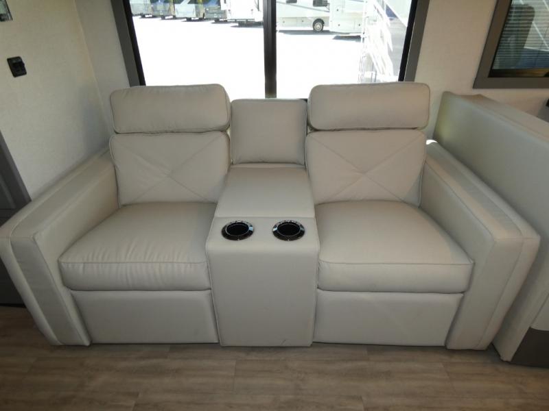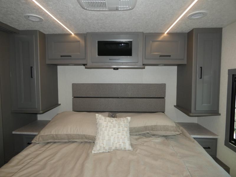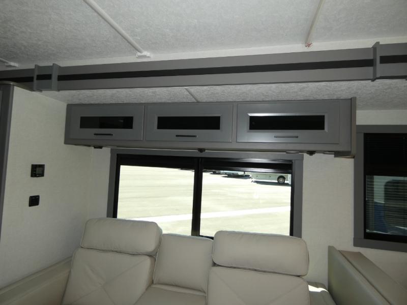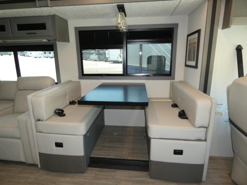 You and your family will be fascinated with this motor home. Perfect for family and guests due to its plenty of room to sleep, like the 70" x 74" king bed for a couple, and the 47" x 81" overhead bunk where two more people can easily fit. This unit is equipped with all the facilities need for a comfortable ride starting with a full bathroom with a 30" x 36" shower, interior kitchen with fridge, farm sink, three cooktop burners, microwave and a 42" x 76" dinette ideal to eat the dinner comfortably. You can also have relaxing and entertaining time whether watching the TV in the living room while enjoying the fireplace or in the 32" bedroom LED TV. In this motorhome, you will also find plenty of space to store your stuff in diverse parts, like wardrobe, dresser, and overhead cabinets in the bedroom area, as well as linen/ pantry and overhead cabinets in the kitchen area. Finally, enjoy the nicest meals in the outdoor kitchen, allowing you to have a great time having food while admiring the surroundings.
