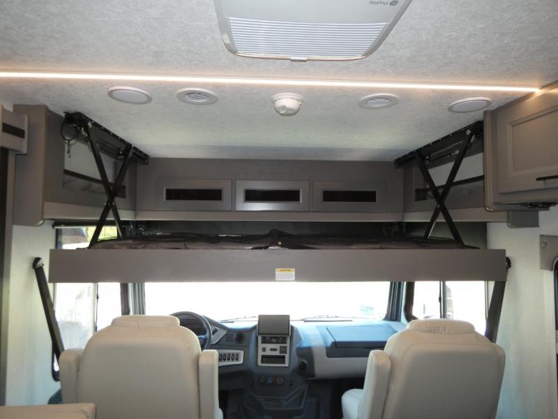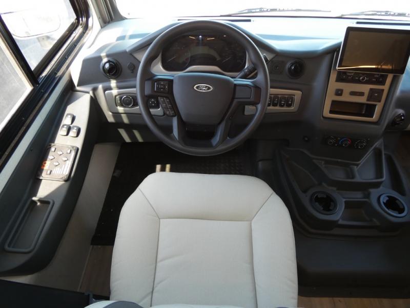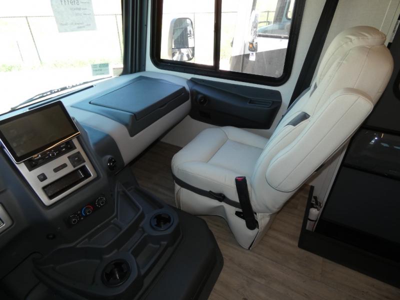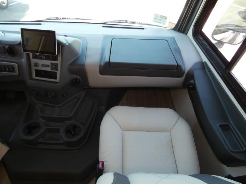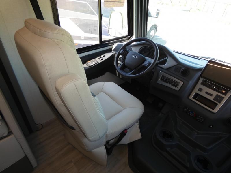 Each Mirada Class A gas motorhome by Coachmen is constructed with a crowned, laminated fiberglass roof with Azdel Superlite composite for added durability, along with high gloss gelcoat sidewalls. There is a 7.3L V8 engine on a Ford F53 chassis for power you can feel, and a 10" touch screen radio with AM/FM radio with Bluetooth capability. The 5.5 kW gas generator, dual coach batteries, and 100W solar panel with a controller will meet all your power needs, and the automatic leveling jacks make setting up camp a breeze. Head inside to find premium linoleum throughout, hardwood cabinet doors, kitchen tile backsplash, and solar privacy shades throughout to name a few comforts. The open road is yours for the taking in a Mirada Class A gas motorhome!