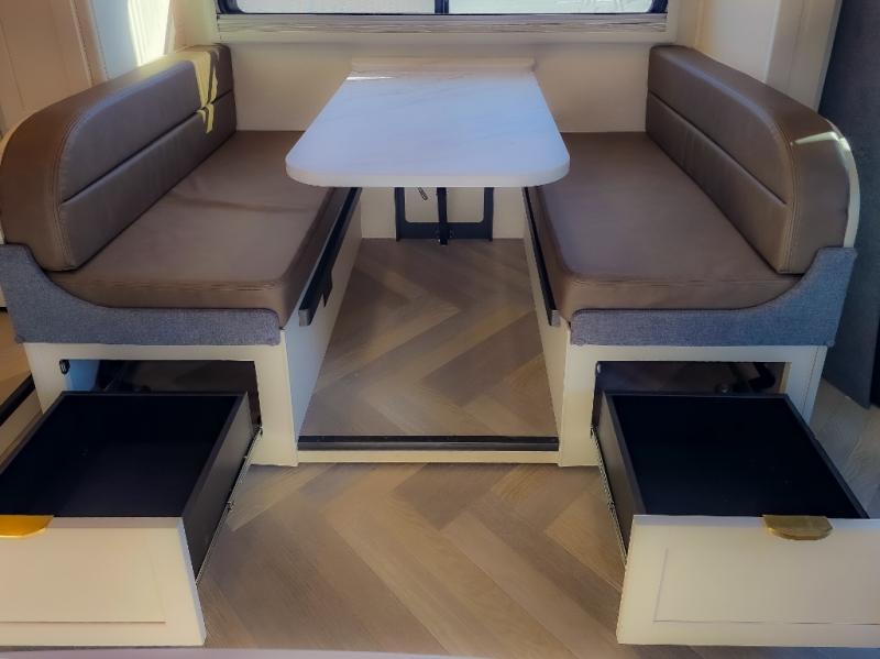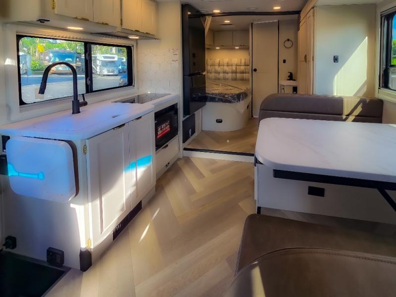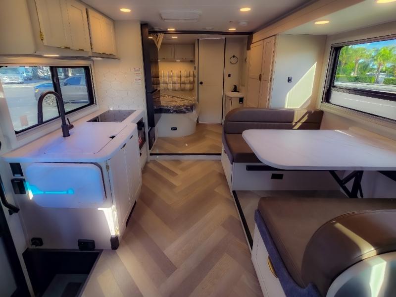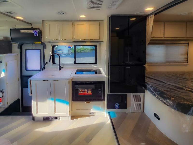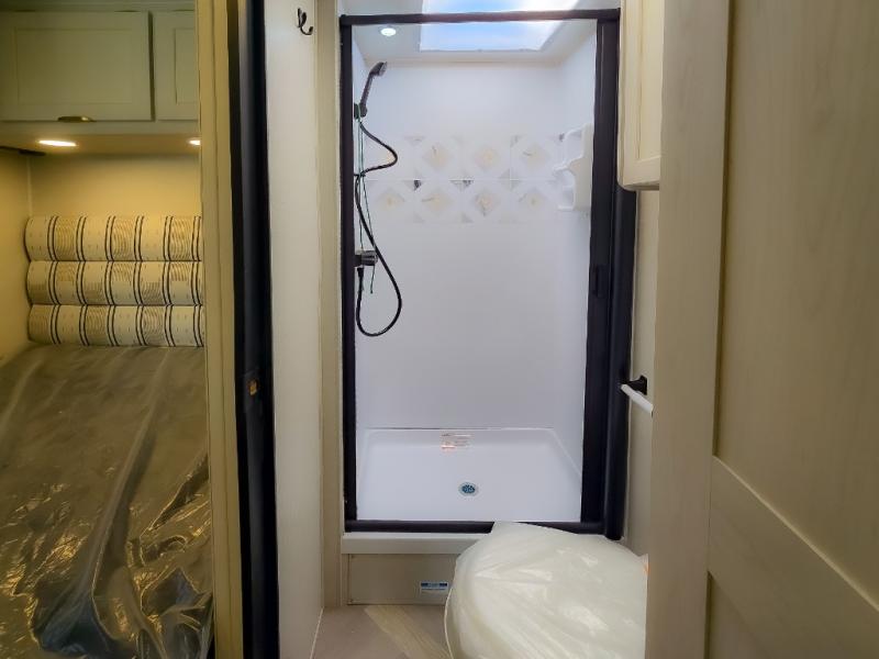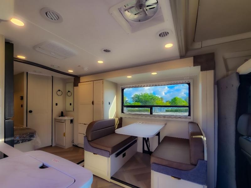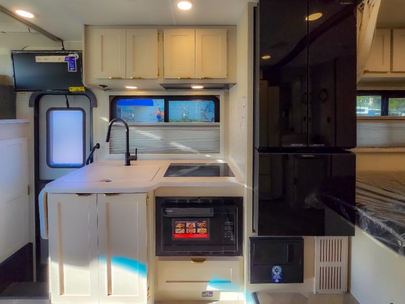 You will find comfort, convenience, and affordability in this Prism Select Class C diesel motorhome! The kitchen is equipped with a two-burner induction cooktop, large sink, 12V refrigerator, countertop extension, and a pantry so that you can eat your favorite meals no matter where you are. You can also enjoy those meals at the dinette. Sleeping space is easy to find in this coach because there is a full-size bed and a bunk above the cab, and the dinette can also provide sleeping space once it's folded into position. This coach gives you the opportunity to customize as you wish because it comes with a couple of options, like the optional recliners in place of the dinette, an optional cockpit folding table, or optional 200W roof solar power!