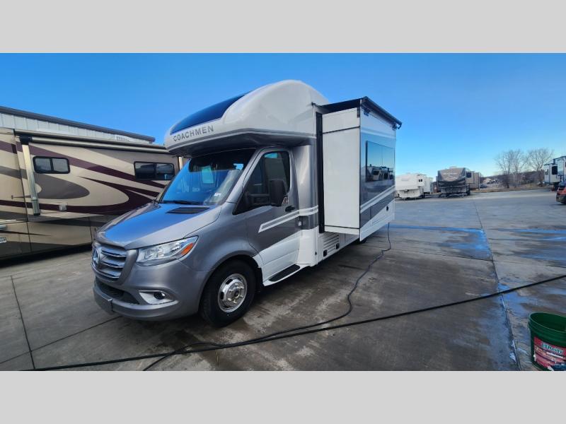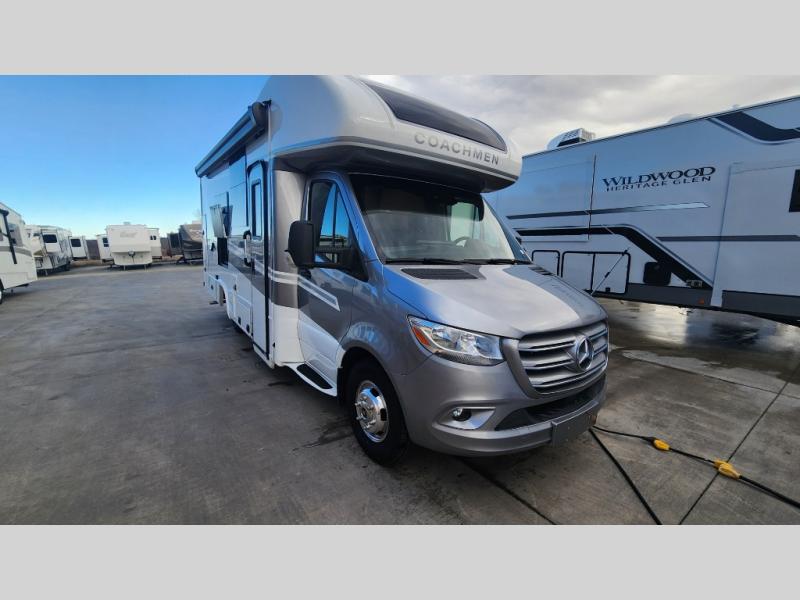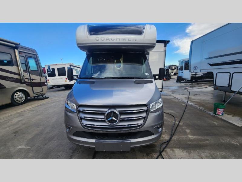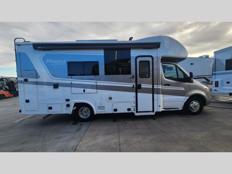 There is much to love about each one of these Coachmen Prism Select Class C diesel motorhomes, starting with the Mercedes-Benz chassis that is sure to get you where you wish to go. You will also appreciate the CrossFlex roof membrane, Azdel "SuperLite" substrate with aluminum framing to resist dry rot, and the 2" vacuum-bond laminated sidewalls for added durability. A 3.6kW LP generator will help keep you powered up, and a tankless water heater will bring added convenience when it's time to freshen up. You will also love the two-tone interior cabinetry inside, along with thermofoil countertops, pull-down window shades, and a coach TV for entertainment!