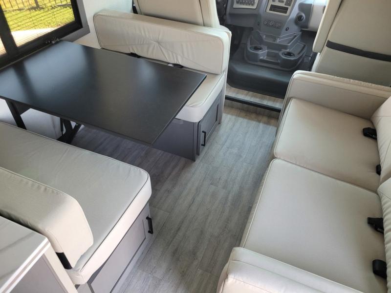 Live your best life on the road with this motorhome! The rear private bedroom has a 60" x 74" queen bed to lay your head on at night with wardrobes on either side of it for your clothes. A separated bathroom makes it easy for one person to freshen up in the 24" x 32" shower while another uses the private toilet and sink. Enjoy home cooked meals while out on the road with the stainless steel three burner cooktop, the 12V stainless steel double door 10 cu. ft. refrigerator, and even the stainless steel microwave oven. Eat your meals, play card games, and even transform the 42" x 70" booth dinette into an extra sleeping space. The 63" sofa has storage below for an extra blanket or board games. If you need to get some work done while you're away then you will appreciate the computer work station with 12V, 110V, and USB outlets in front of the passenger chair!