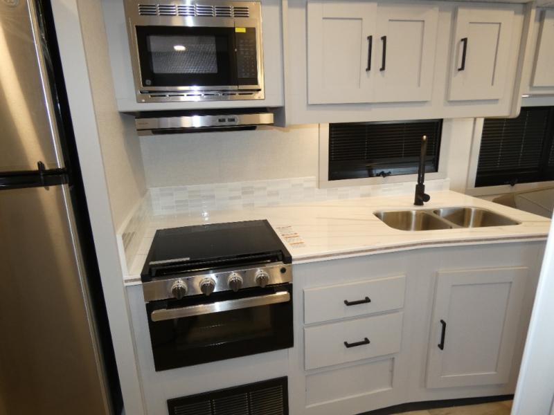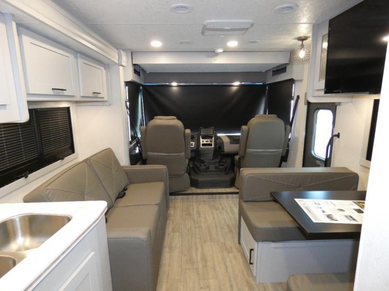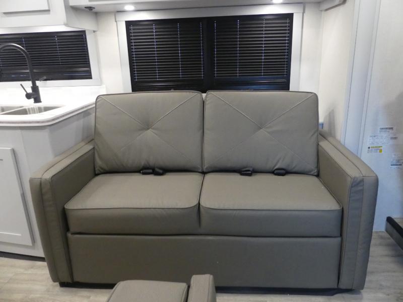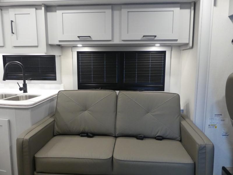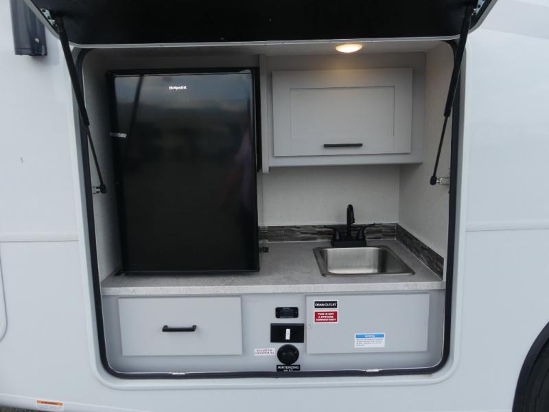 You will be impressed with all that this motorhome has to offer! Starting with the exterior kitchen with a double sink for easy clean-up and the exterior LED TV to stay up to date with the big game as you cook. The rear private bedroom will have you feeling right at home with the 60" x 74" queen bed that has a CPAP station above it and across from wardrobes on either side of the LED TV and storage space. There is a broom closet for your convenience just outside the full bathroom which has a 38" x 24" shower with a skylight for more head room and natural lighting. The fully equipped kitchen has everything you need to prepare your best meals including a stainless steel microwave oven, and you can enjoy them at the 30" x 70" booth dinette. Relax in true comfort on the 63" sofa with storage below for extra games or blanket!