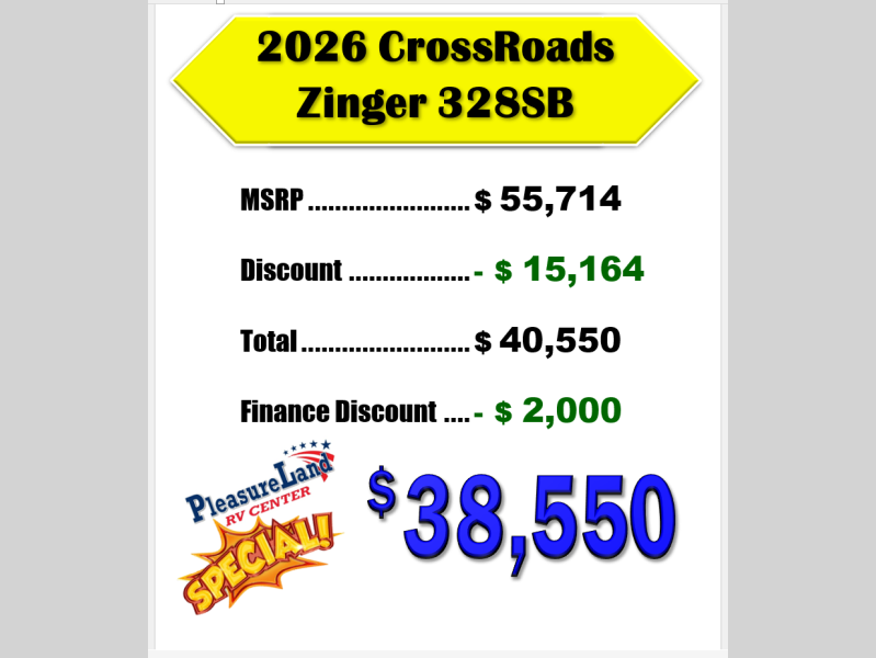 New 2026 CrossRoads RV Zinger 328SB Travel Trailer