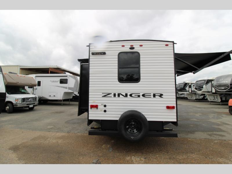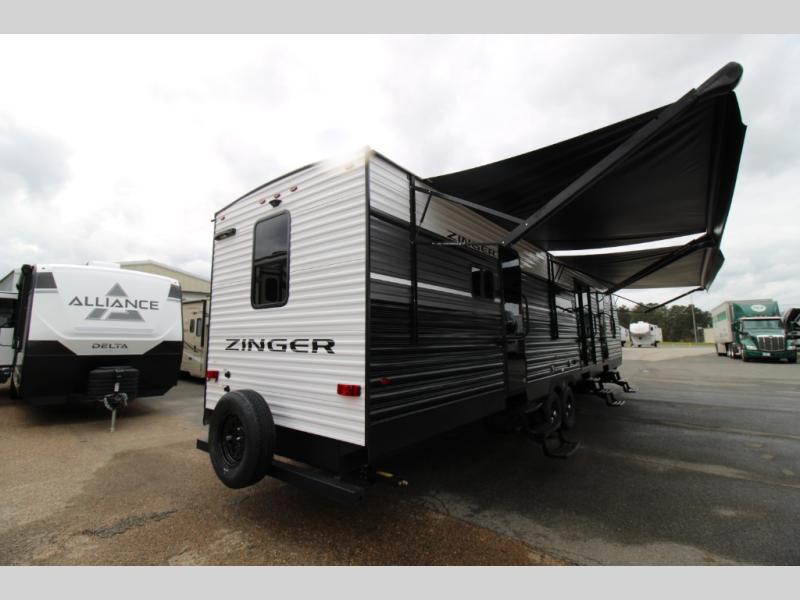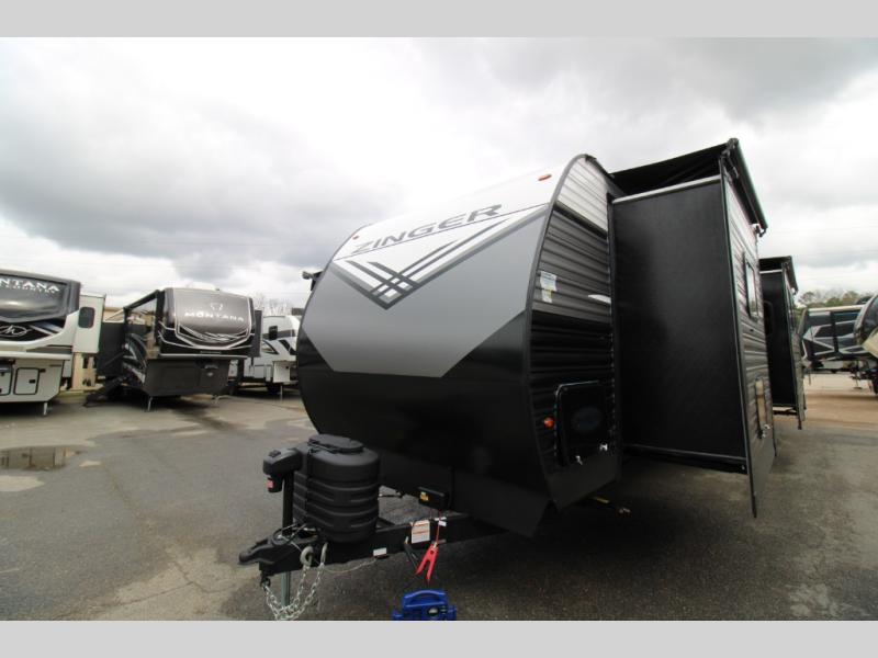 Lead your family to a great vacation getaway in any one of these CrossRoads RV Zinger travel trailers! They feature an aerodynamic front end, Keyed-Alike door locks, Secure Stance entry steps, and exterior speakers with LED accents. The interior of each model includes kitchen backsplash and pressed countertops, along with generous storage, designer valances, and LED lighting to keep your space well lit. You will also appreciate USB ports to keep your electronics charged up, and there is an AM/FM stereo with a Bluetooth soundbar to keep the party going!
