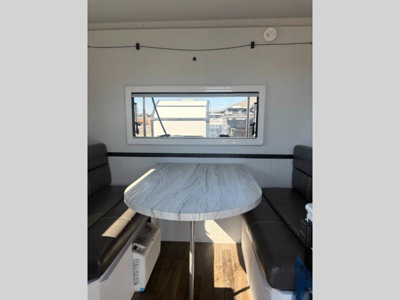 The Cube Series camper uses lightweight materials to provide an easy-to-tow experience. The roof can be opened and closed electrically. Each model has a standard furnace and is prewired for a solar panel, and there's a 30 amp shore power hookup ready for use at the campground. LED lights and integrated power sockets and USB ports make charging easy. Wood look vinyl flooring is easy to clean, and tinted vinyl sliding windows provide a great view. A variety of interior and exterior color options are ready for you to customize these to your liking!