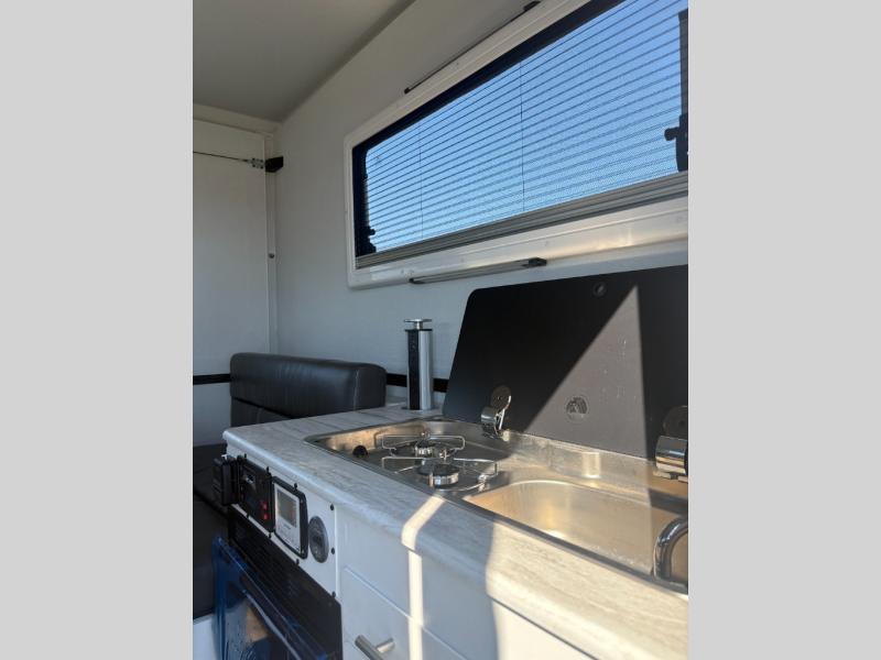 The Cube Series truck camper has an innovative "folding wall" design that can be used even with some subcompact pickup trucks. This smaller footprint allows the camper to fit in most garages in its collapsed form, yet still allows for plenty of great features for camping. The opposing dinette converts to a 75" sleeper bed. You'll also appreciate being able to cook on the two-burner stove with sink combo. Conveniences like the outside shower and optional Thetford electric flushing cassette toilet make your life easier. Setup is easy with the manual camper jacks with removable jack mount system, plus the system of camper tie downs for in truck bed connection.