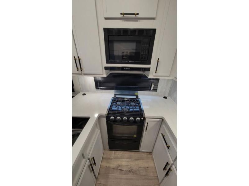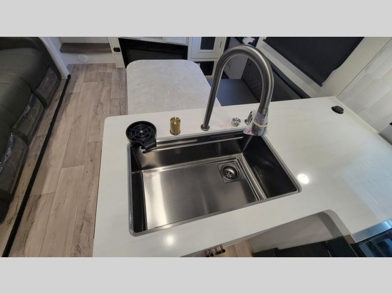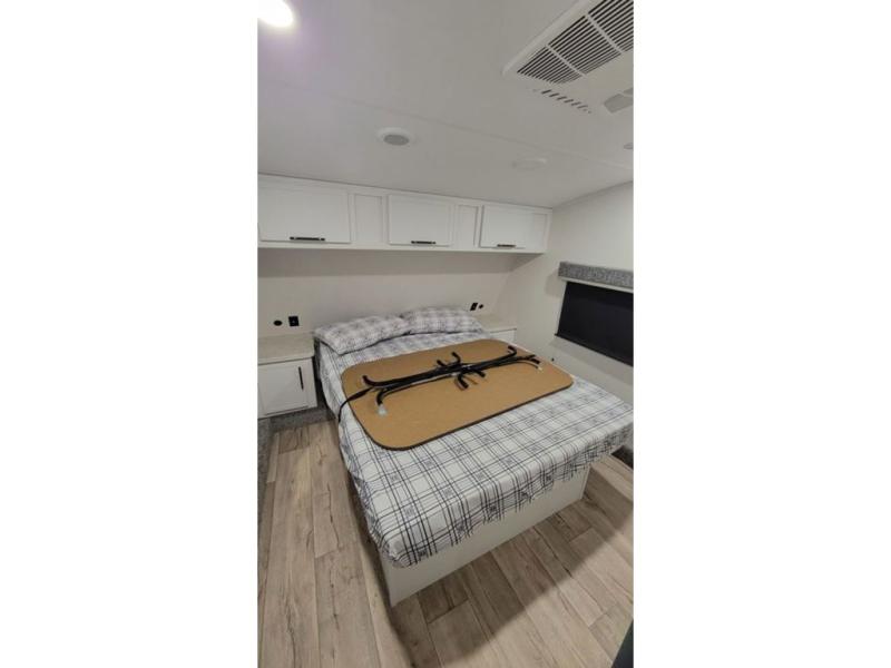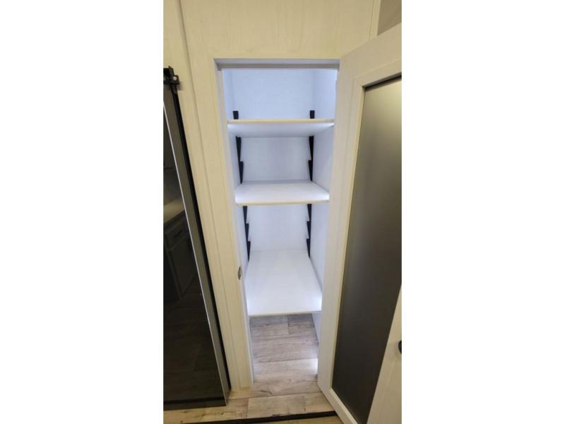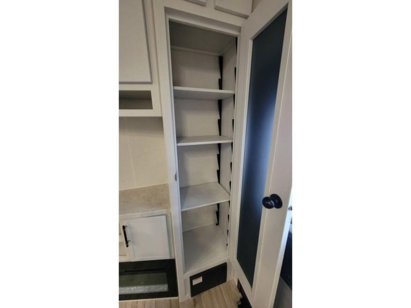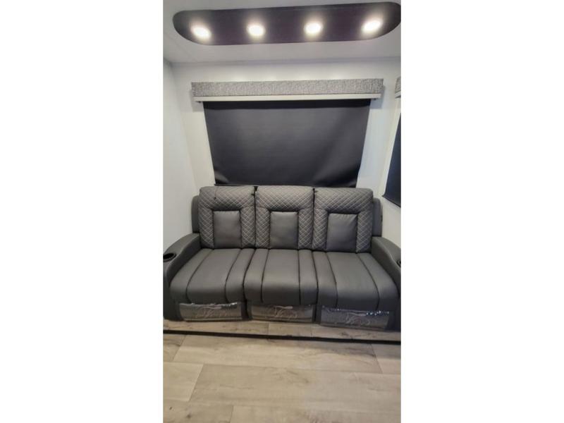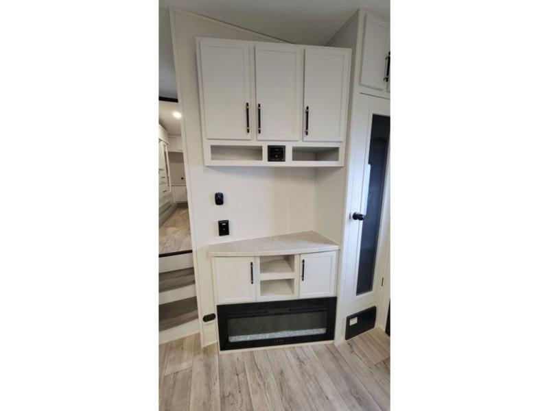 Load up your favorite off-road toys, grab a few friends and head out for a weekend of fun! This Voltage V-Series features a 14' garage with sleeping for seven or eight with the Bed Lift System over the dual sofas and dinette which convert to more sleeping in the garage area, a loft, and private front bedroom with queen bed. The main combined kitchen and living space features a reclining sofa with foot rest housed in the large slide that also includes a 16 cu. ft. 12V refrigerator and pantry for all of your food storage needs. There are full kitchen and bath amenities to keep you fueled and clean, and you will also enjoy the 40" TV and fireplace when relaxing inside. A 21' awning offers additional living space outside, and there is a Pac & Stack half bath in the garage for added convenience when coming in from a ride located beneath the loft. This unit also offers ample storage with a full pass-through compartment outside, and inside cabinets, pantry storage, plus wardrobe, dresser, and under bed storage as well.