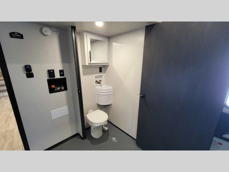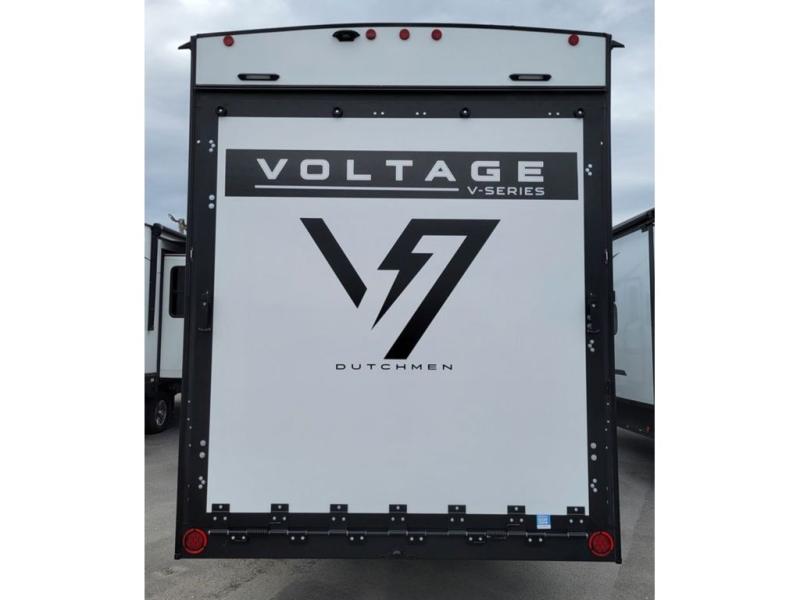 The Voltage V-Series by Dutchmen RV is a smaller and lighter weight choice when it comes to a toy hauler. These were designed with the same comforts that you would find in the standard Voltage models with the Signature Series collection including glazed cabinets with raised panel cabinet doors, modern hardware throughout, upgraded finishes and custom paint and stain. You will also enjoy the tankless water heater, garage Bed Lift System, Tuff Ply garage floor, and weight assisted ramp door for ease in loading and unloading your toys. A few bonus features like a 50" walk-in shower, 40" fireplace, and 30 gallon fuel station just makes your adventures that much more enjoyable! Come choose the Voltage V-Series as your new lightweight companion toy hauler today!