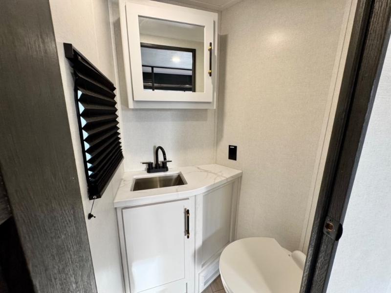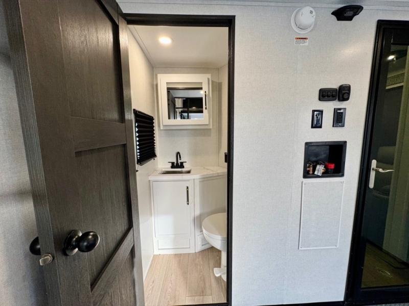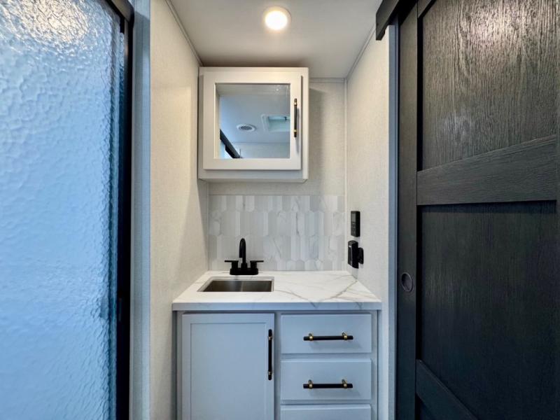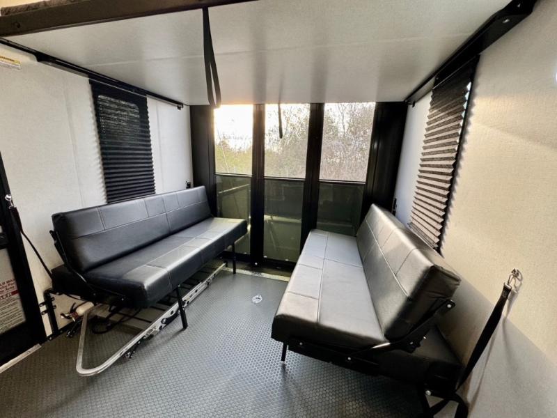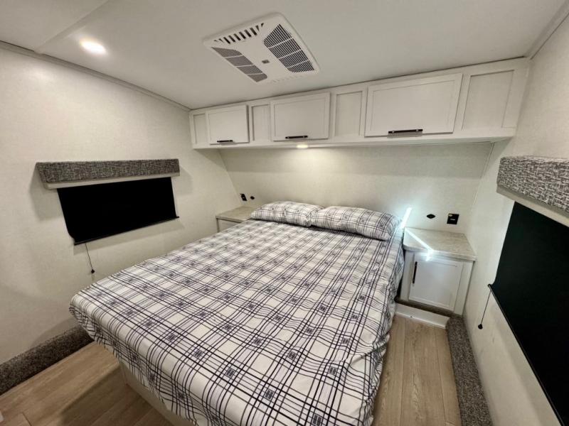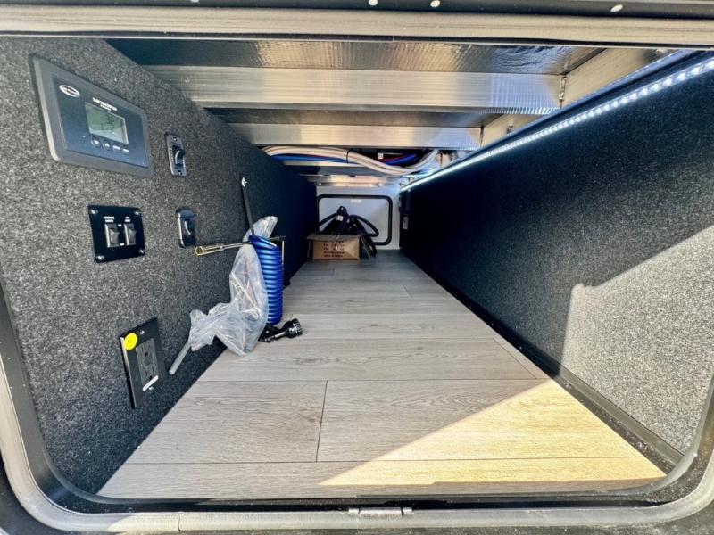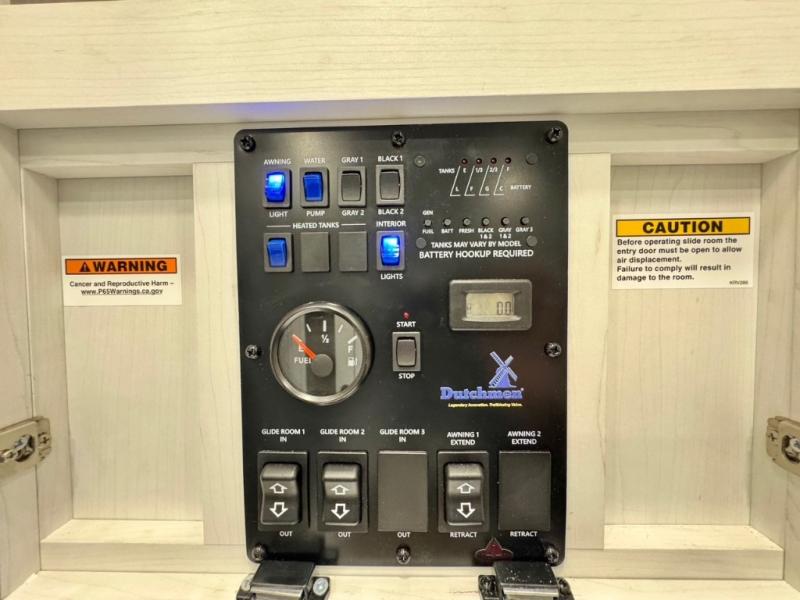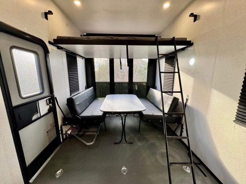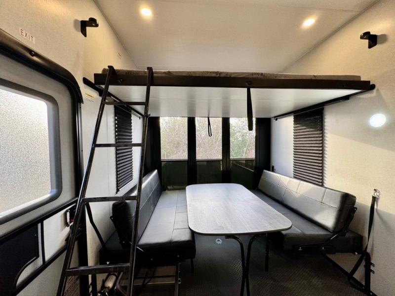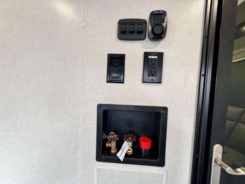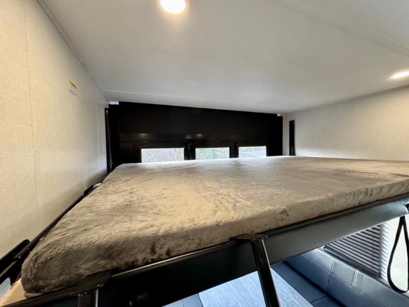 The Voltage V-Series by Dutchmen RV is a smaller and lighter weight choice when it comes to a toy hauler. These were designed with the same comforts that you would find in the standard Voltage models with the Signature Series collection including glazed cabinets with raised panel cabinet doors, modern hardware throughout, upgraded finishes and custom paint and stain. You will also enjoy the tankless water heater, garage Bed Lift System, Tuff Ply garage floor, and weight assisted ramp door for ease in loading and unloading your toys. A few bonus features like a 50" walk-in shower, 40" fireplace, and 30 gallon fuel station just makes your adventures that much more enjoyable! Come choose the Voltage V-Series as your new lightweight companion toy hauler today!