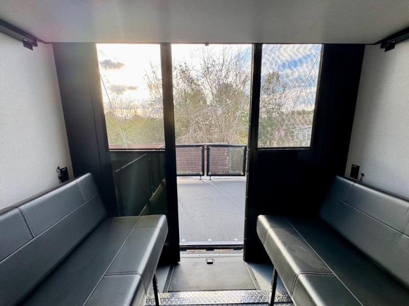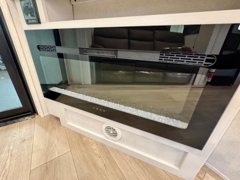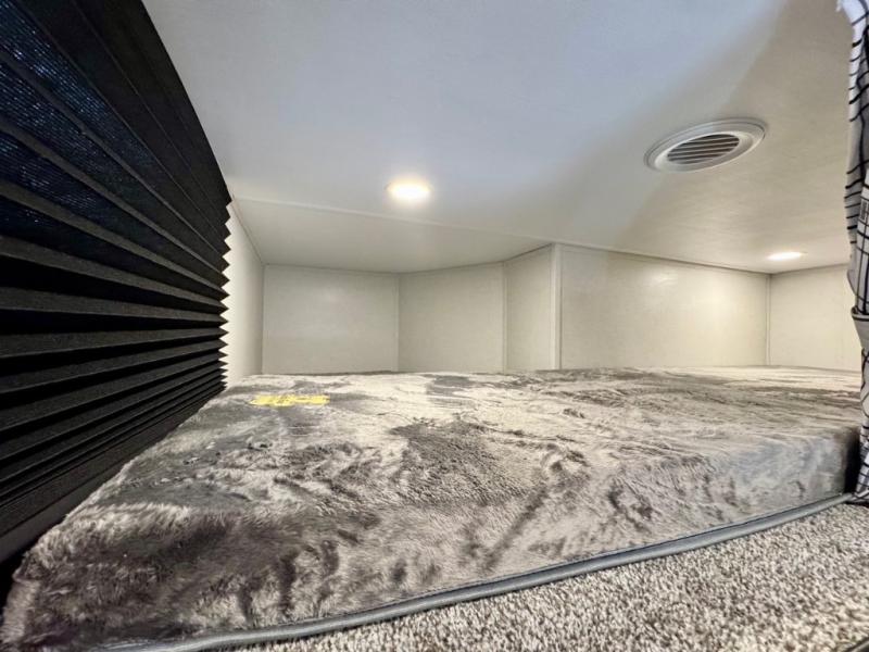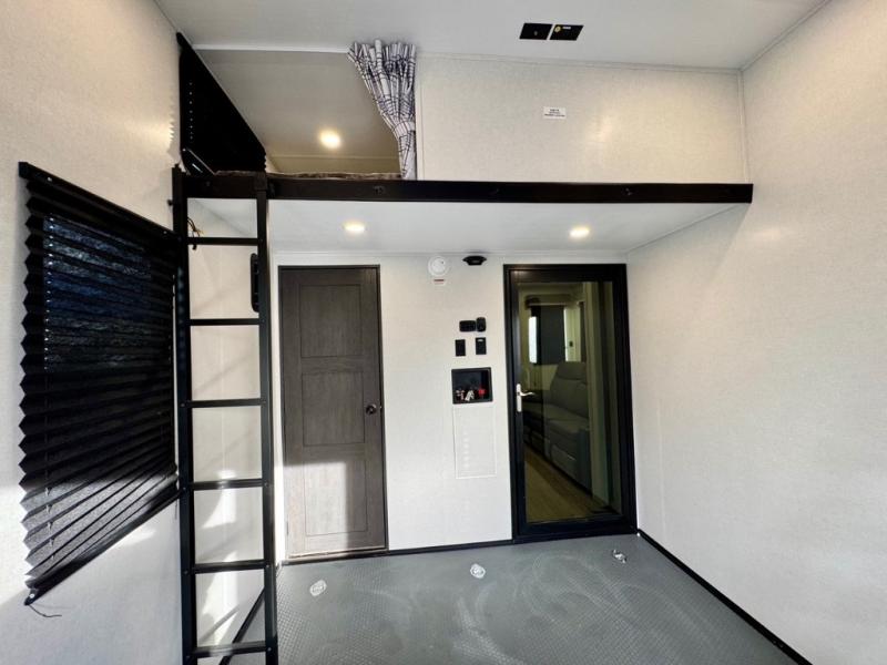 Make it a week of fun with this Voltage V-Series toy hauler featuring a 14' garage with sleeping for seven or eight thanks to the Bed Lift System over dual sofas and a dinette which convert to more sleeping in the garage area, a loft, and private front bedroom with queen bed. The main combined kitchen and living area features theater seating within a slide for added floor space and there is perfect viewing of the entertainment center and fireplace adjacent. You will enjoy full kitchen and bath amenities to keep you fueled and clean, and the half bath in the garage will make it easy for everyone. A 21' awning offers additional living space outside, and the second entry door within the garage space leads into that half bath for added convenience. This unit also offers ample storage with a full pass-through compartment, plus inside cabinets, dual closets, and under bed storage as well.
