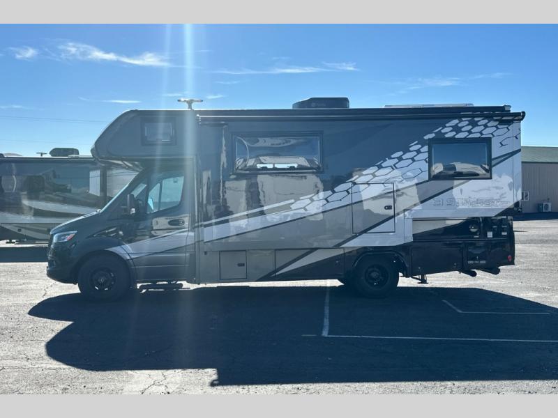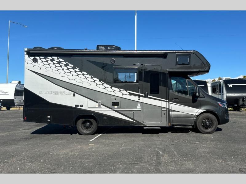 Each one of these Dynamax Isata 3 Class C diesel motorhomes were designed to last with composite exterior fiberglass with no exterior wood, aluminum-framed roof trusses, and composite flooring substrate. The 2.0L l-4 turbo diesel engine will power your adventures, and the Mercedes-Benz Sprinter chassis provides a durable foundation. There is an MBUX 10.25" infotainment system and a quad-view camera system that will let the driver navigate the open road like a pro, and the added safety features are sure to bring you peace of mind. Outside, you'll be wowed by the custom full-body paint package with front-end Diamond Shield paint protection, plus there are exterior speakers, an armless patio awning with LED lights, and seamless rotocast storage compartments for your gear! Each model also includes many interior comforts to make you feel right at home, like the premium vinyl flooring throughout, hardwood craftsman-style cabinetry, solid surface countertops with LED edge lighting and backsplash, and the list goes on!