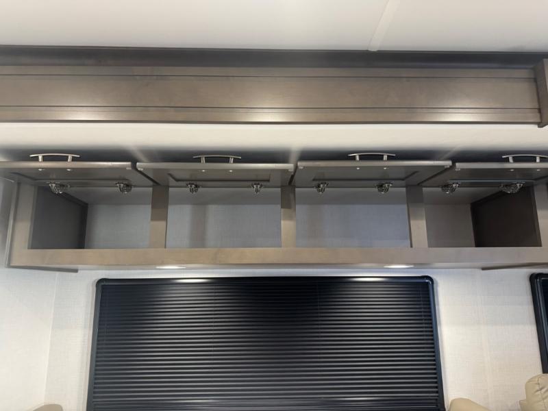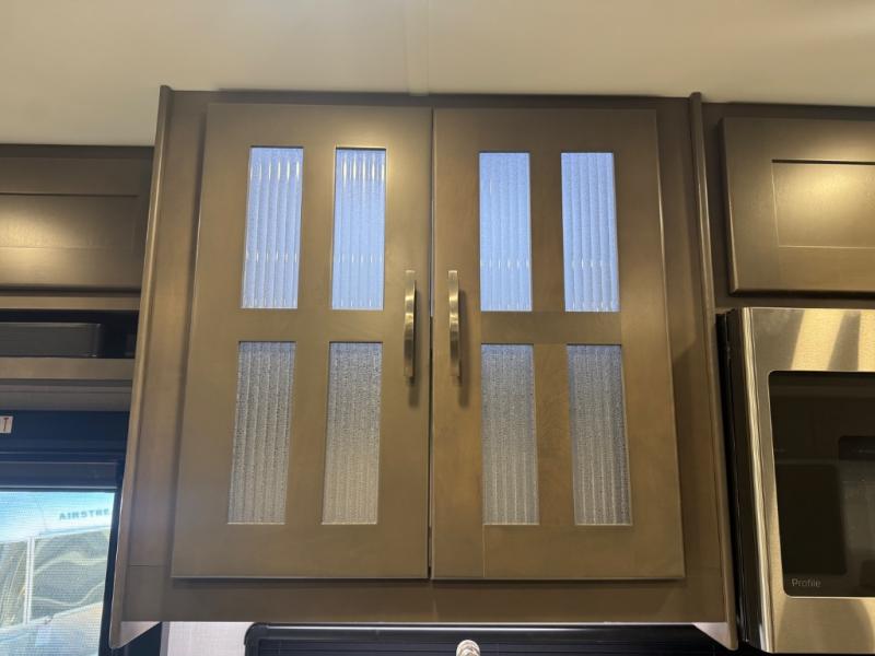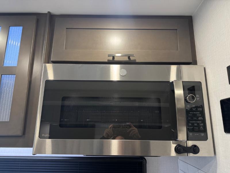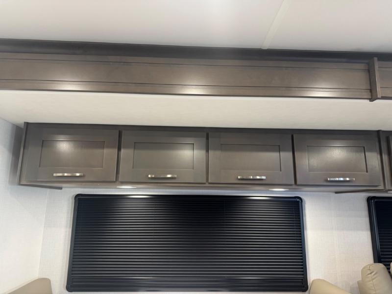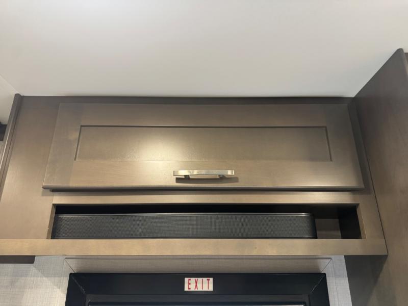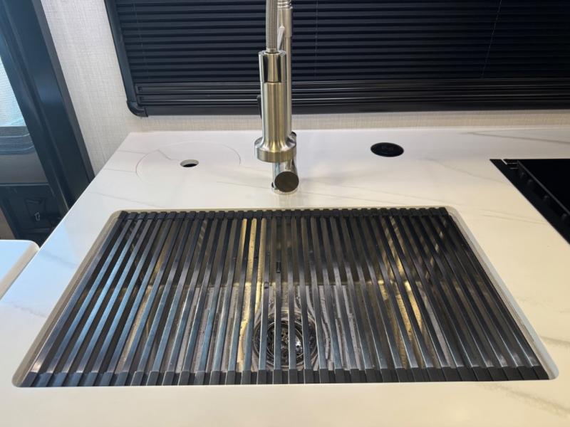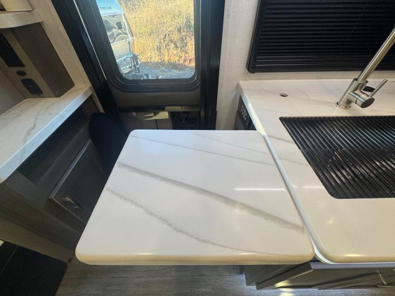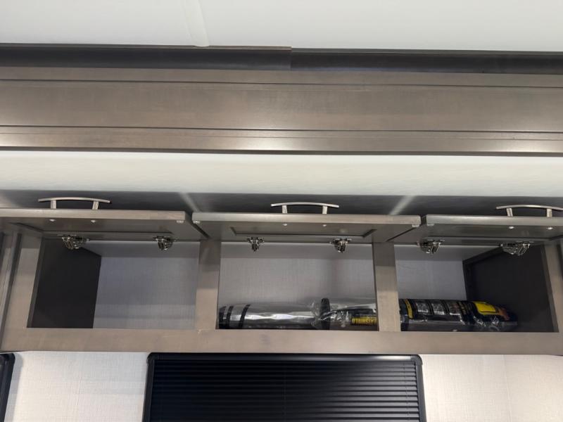 You will have plenty of space to walk about this motorhome with the dual slides! The booth dinette and sofa slide create an open concept living area and the sofa can be replaced for the optional theater seating if you prefer that instead. Freshen up after a long day of traveling in the rear corner bathroom with the designer shower that has a skylight above for more natural lighting and an Oxygenics body spa RV shower head for a more relaxing shower. Put on your comfy clothes stored in the wardrobe in the rear corner private bedroom then either lay on the 60" x 75" gel-infused memory foam mattress while you watch a movie on the 32" LED smart TV or head to the kitchen and whip up a meal with the three burner gas range and countertop extension. You could even head outside and watch a movie on the exterior 32" TV underneath the 16' dual-pitch armless awning!