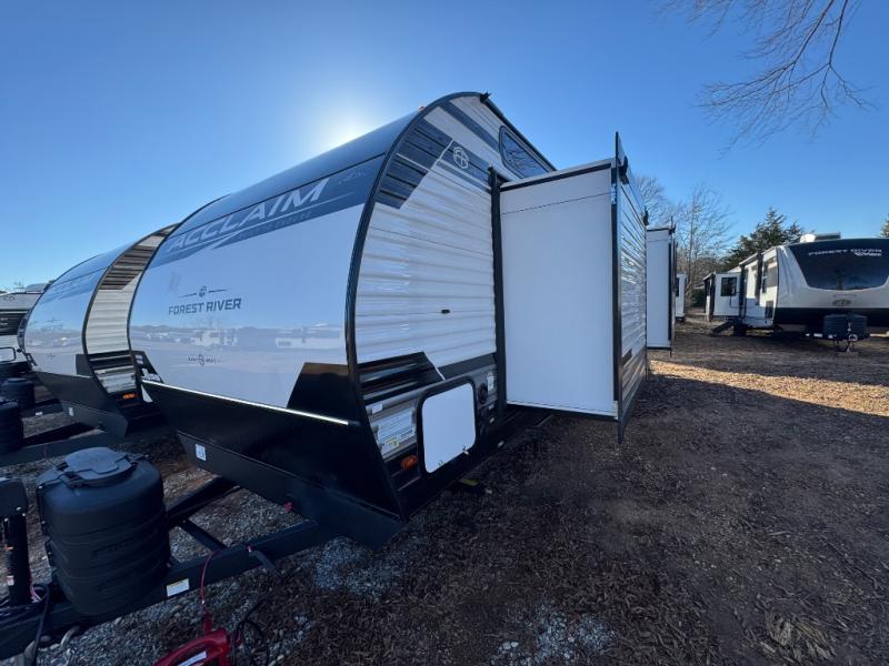 EAST TO WEST Acclaim travel trailers feature an enclosed and heated underbelly, ensuring a cozy and dry space no matter the weather. The 81" interior ceiling height throughout provides ample space to move around, while our residential-inspired kitchen and living spaces make you feel right at home. Our tankless on-demand water heater provides endless hot water, while the power awning with adjustable legs offers the perfect outdoor retreat. The LP quick connect for outdoor grill makes it easy to cook up a storm, whether you're parked in the mountains or by the lake. Plus, with a 7-way plug and chain holder, you'll be ready to hook up and go. We know that pets are part of the family, which is why our trailers are designed with pet-friendly features like D-Ring tie-downs and a pet-friendly layout.