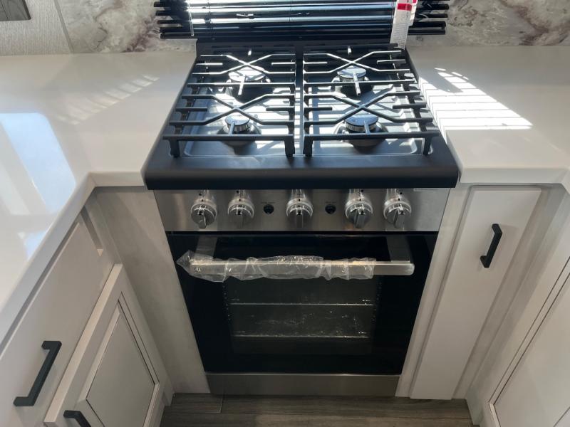 There is just too much luxury to name on the EAST TO WEST Ahara fifth wheel! These units are quite impressive, and once you see them, you'll know what we mean. The Ahara first grabs your attention with its fully painted aerodynamic fiberglass front cap, 102" wide-body chassis, and deep tint square frameless windows. For towing, you'll find a MORryde CRE 3000 suspension, LED marker lights, LED taillights with back-up lights, and rear view camera prep. Traveling in different climates is also made easy with the high-efficiency triple A/C system, 40,000 BTU high-capacity furnace, plus heated, insulated, and enclosed underbelly found within the Climate Package. Head inside to enjoy Slow Rise roller shades, a flush floor kitchen slide to help prevent trips, and solid surface countertops in the kitchen and bath to name a few luxuries!