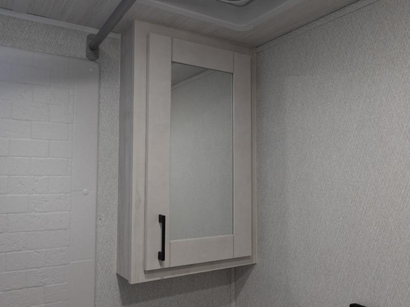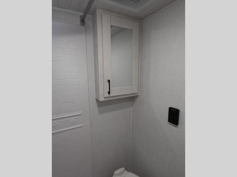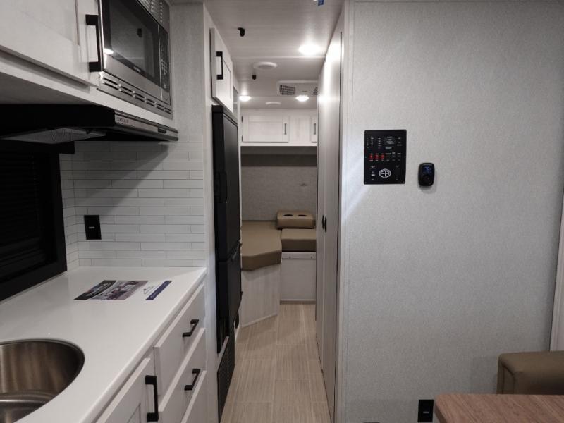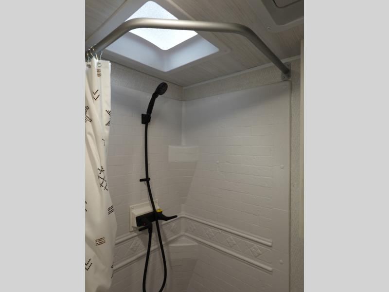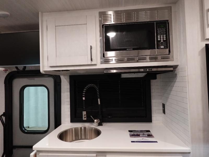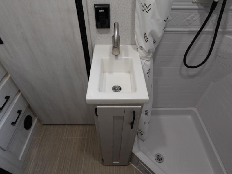 Whether you are traveling to your favorite campground or across the country, you are going to love this motorhome. You will have versatility in this coach to travel with a friend or your sweetheart with two twin beds that can easily convert to a king bed if you like. Each bed is 36" x 73" with a nightstand between and overhead storage along both sides and across the rear of the unit providing plenty of space for your things. There is also a wardrobe off the foot of the twin that is on the curbside. A sofa slide out with a table will provide a place to relax and dine together. The kitchen is opposite the slide on the door side and features a round hidden sink with solid surface cover for added prep space, a 12-volt 6 cu. ft. refrigerator for your perishables, and a microwave oven and induction cooktop for easy meals as you travel. When you want to get cleaned up, there is a bath with an angled shower, toilet, and sink, plus medicine cabinet for your toothbrush and razor.