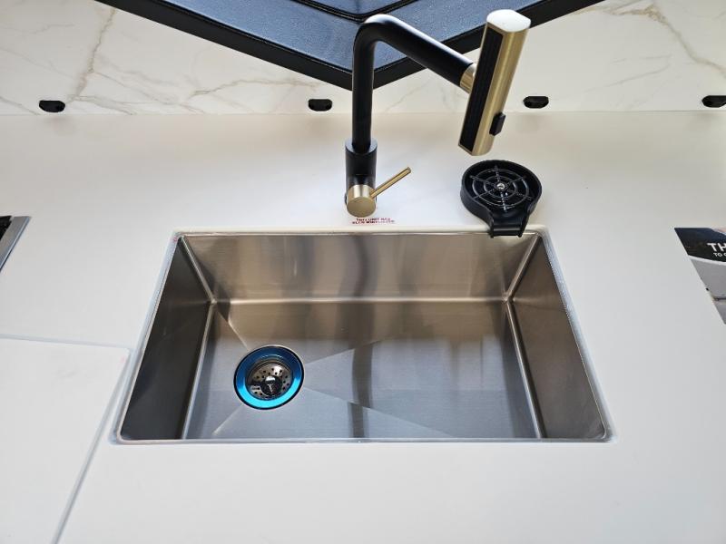 Each Alta travel trailer or toy hauler by EAST TO WEST is constructed with a 5" vacuum bonded roof, an enclosed and heated underbelly, and diamond plate front rock guard for added protection. Outside, you'll find exterior LED lights, a universal docking station, and back-up camera prep that can be added to make maneuvering in and out of campgrounds easier than ever. Inside, there are upgraded residential-inspired linoleum flooring, solid pressed membrane countertops, black roller shades, and many more interior comforts you are sure to love.
