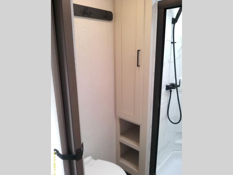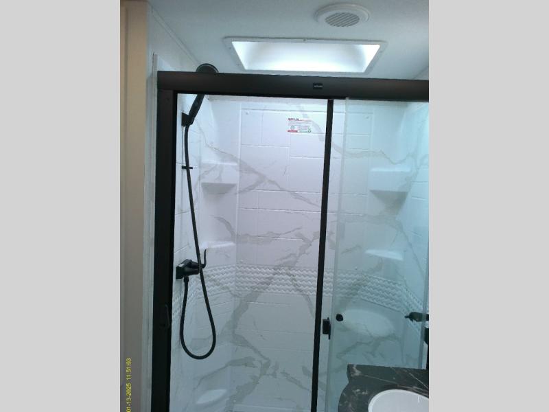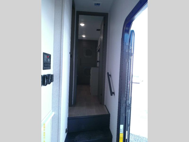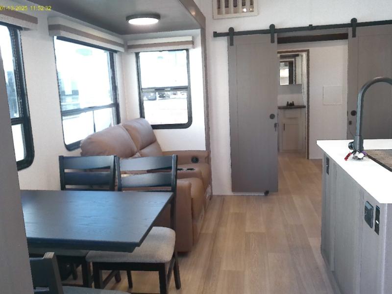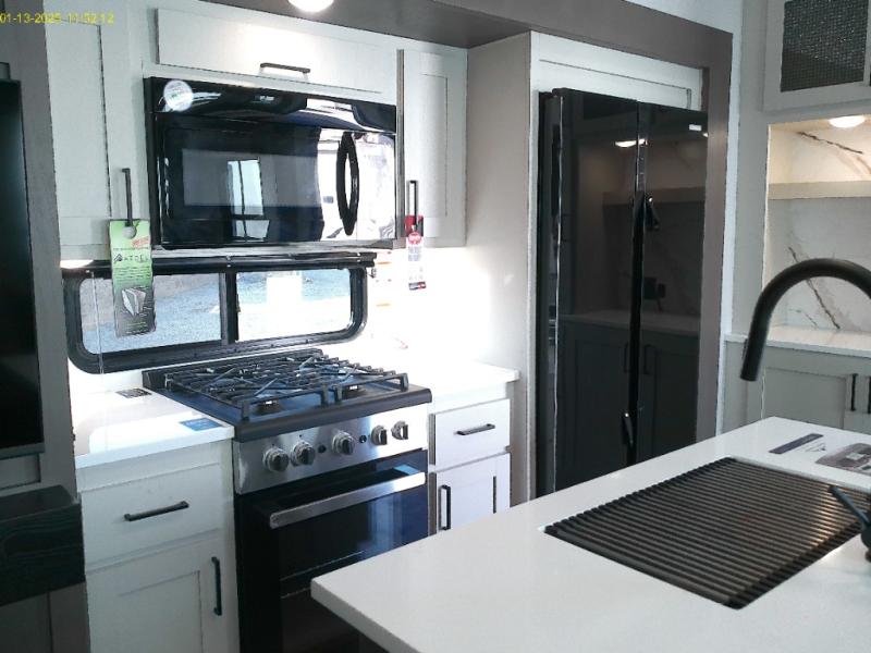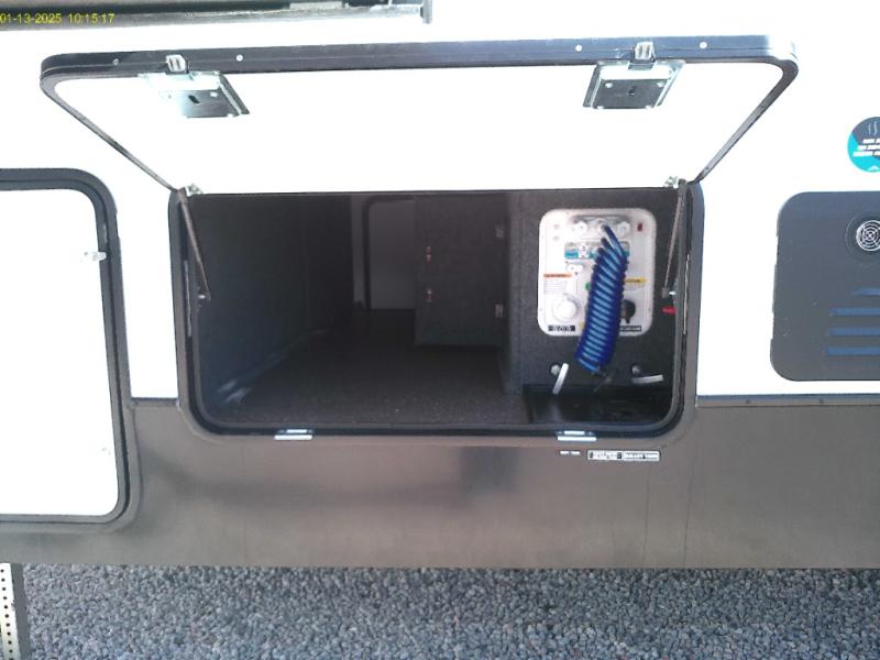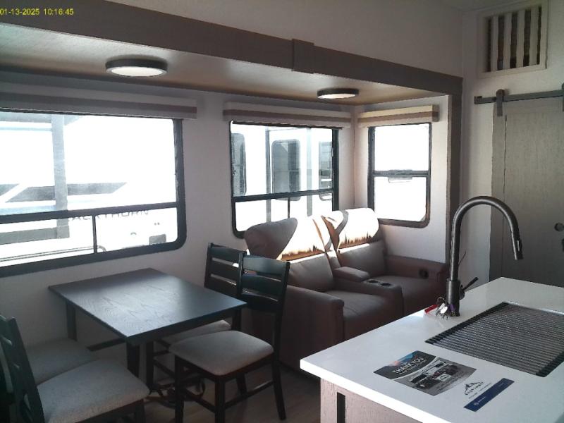 Each East to West Blackthorn Model is thoughtfully designed with both comfort and style in mind. The cliamte package features include an electric fireplace for cozy evenings, a high-capacity 35,000 BTU furnace, and a heated, enclosed underbelly with circulating heat to the dump valves for added protection and functionality. The Interior Luxury Package enhances the living space with solid surface kitchen countertops, Slow Rise roller shades for a sleek look and light control, and built-in CPAP shelves in the bed base for added convenience. On the outside, the Exterior Package delivers practical upgrades like solid entry steps with an extended grab handle, an oversized wide entrance door for easier access, and dual power awnings with LED lighting, perfect for enjoying your outdoor space day or night.