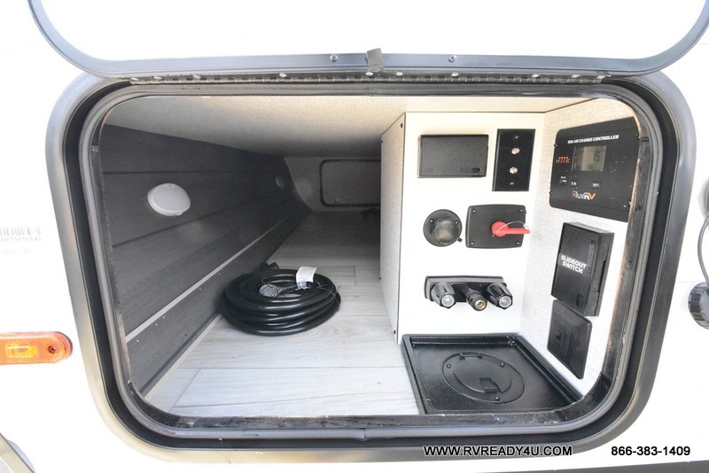 Each Della Terra travel trailer by EAST TO WEST is constructed with an enclosed and heated underbelly and enclosed holding tanks for added protection against the elements. There is also a power tongue jack with an LED light for easy set up and a power awning with LED lights you can rest under after you've unpacked. The Explore Comfort Package comes seamless pressed countertops, kitchen backsplash, window valance package with black night shades, and many more comforts. You will also appreciate the Adventure Outdoor Package with backup camera prep and solar prep, a tankless water heater, an RV grill quick disconnect, and a universal docking station with battery disconnect.