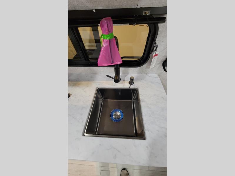 Each Della Terra travel trailer by EAST TO WEST is constructed with an enclosed and heated underbelly and enclosed holding tanks for added protection against the elements. There is also a power tongue jack with an LED light for easy set up and a power awning with LED lights you can rest under after you've unpacked. The Explore Comfort Package comes seamless pressed countertops, kitchen backsplash, window valance package with black night shades, and many more comforts. You will also appreciate the Adventure Outdoor Package with backup camera prep and solar prep, a tankless water heater, an RV grill quick disconnect, and a universal docking station with battery disconnect.