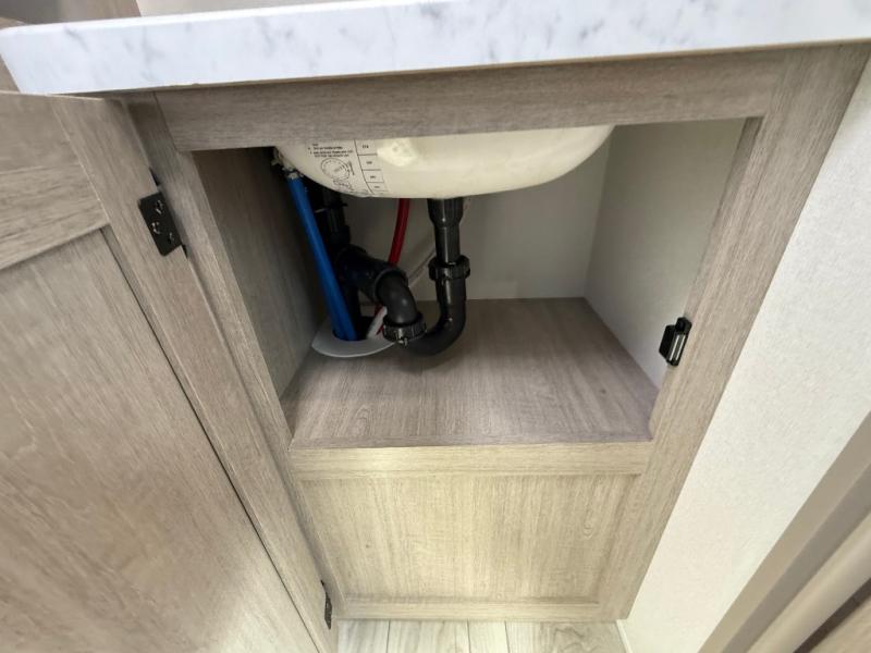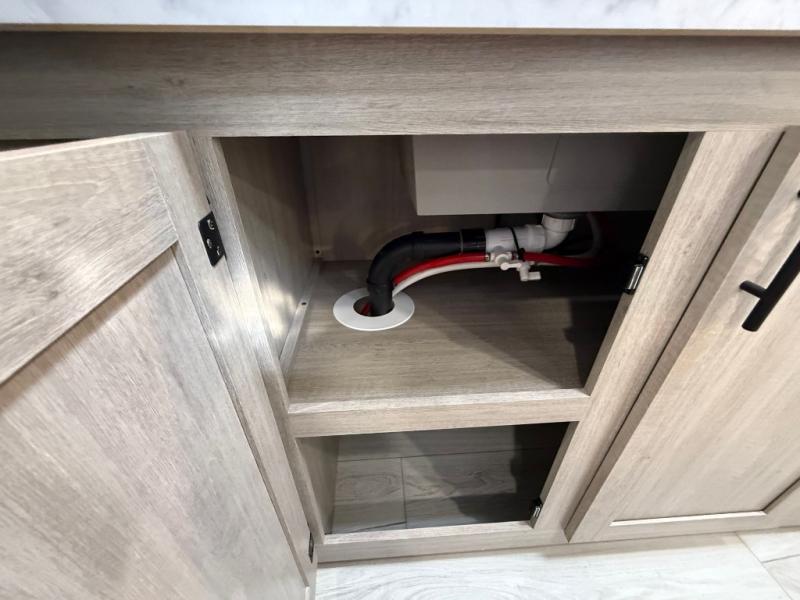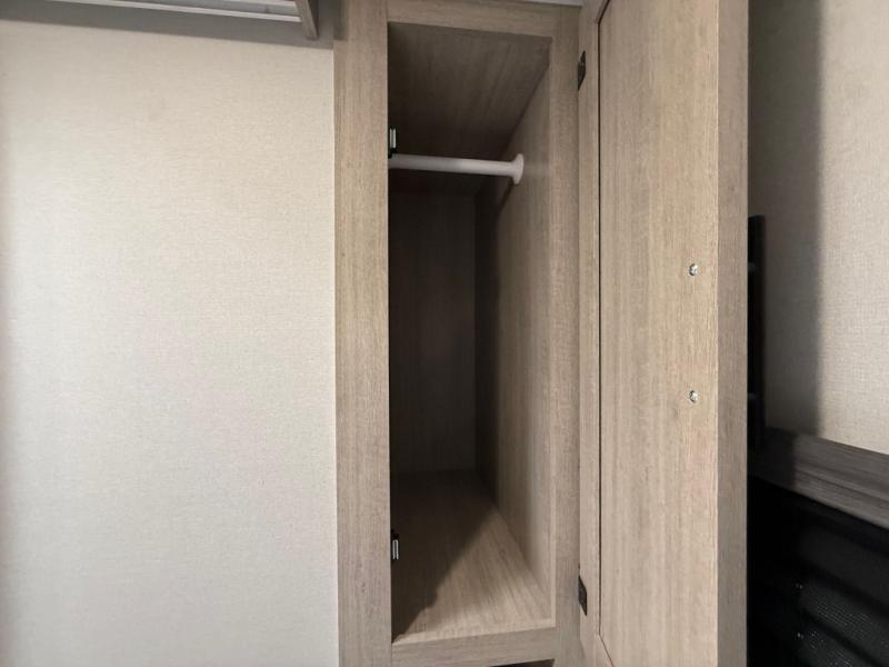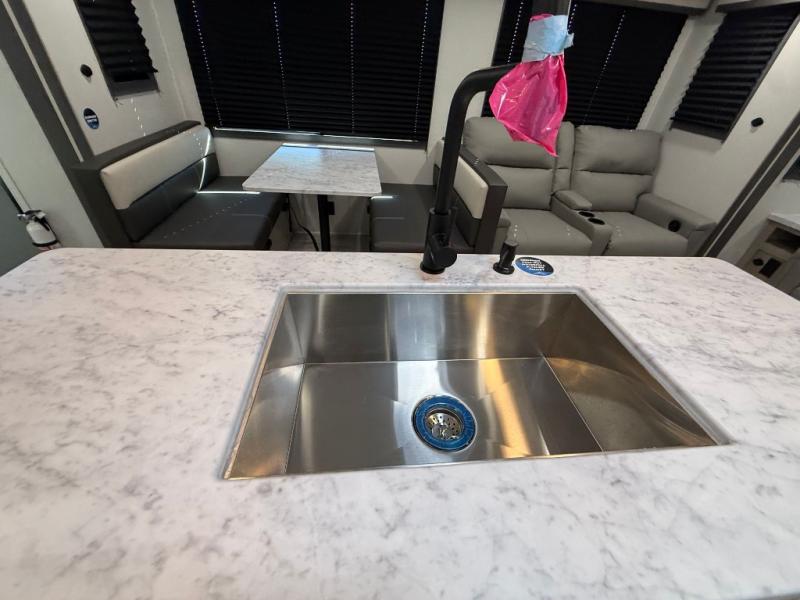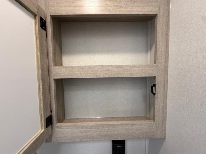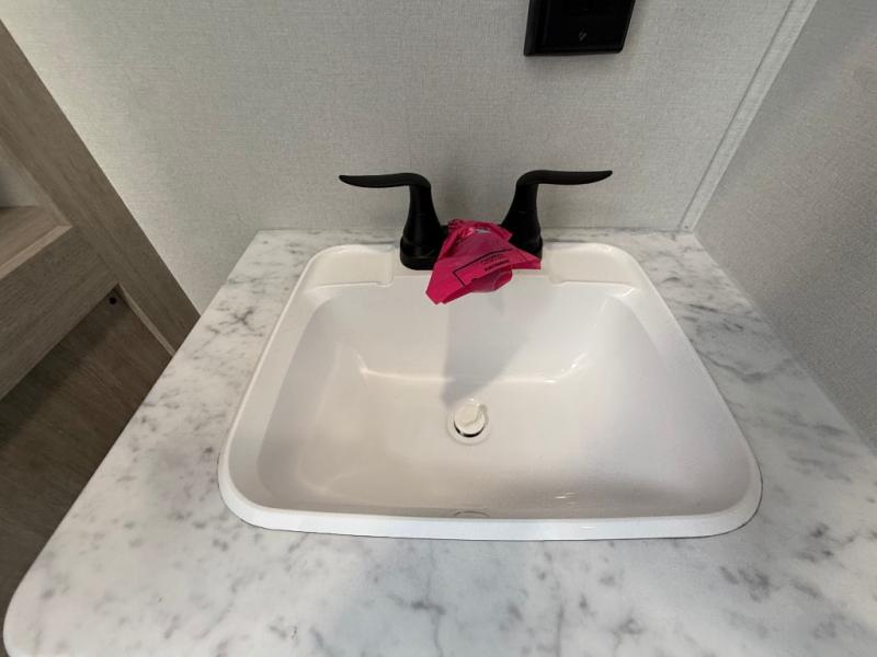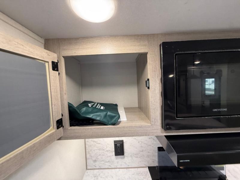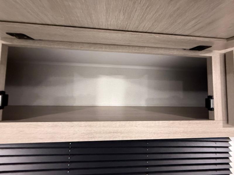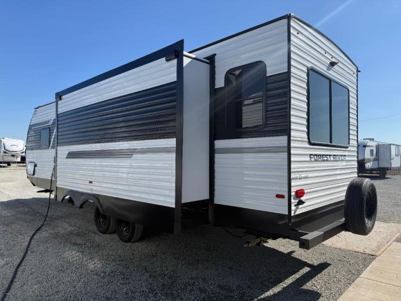 Camping in this double slide out travel trailer will be easier than ever! Once you arrive at your destination, set up the power awning, unload the pass-through storage, and head inside to make lunch in the full kitchen. There is a kitchen island for more prep space, along with a 10.7 cu. ft. 12V refrigerator, three burner range, and microwave oven. You'll find comfortable seating space on the booth dinette, jiffy sofa, and dual lounge chairs, and the fireplace is sure to make your space feel more like home. There is also hidden storage behind the fireplace for pantry items, board games, and more! Up front, a full bath and front private bedroom will let you freshen up before a great night's rest on the king bed!