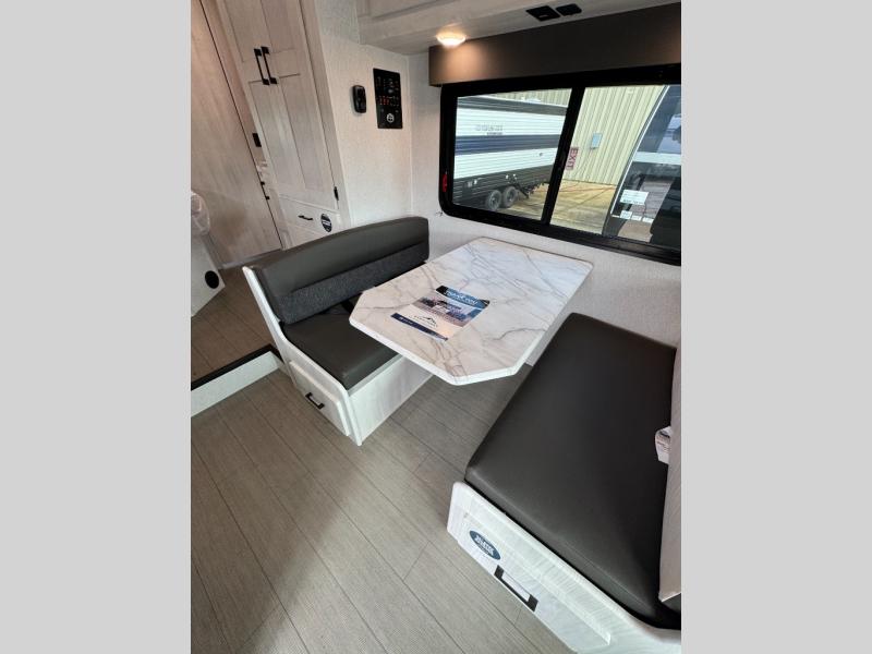 With any Entrada Class C gas motorhome from EAST TO WEST, the construction consists of an automotive painted fiberglass front cap, a Dicor DiFlex ll TPO roof membrane, and Azdel composite sidewalls for added durability. Some of the Entrada value package features include 12V tank heaters to camp during the cooler months, the Winegard Air 360+, plus backup and sideview cameras with a monitor for safety on and off the road. The interior offers a 7-foot interior height for a spacious feel, and 12V USB charge ports will keep your electronics powered up. Choose an Entrada for its tasteful design, attention to detail, bright interior and affordable price-point!