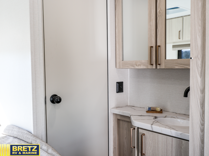 The journey will be oh-so enjoyable when you use this Entrada Class C gas motorhome to explore! You will be able to create meals each day you are on the road because the kitchen has everything you will need, like a convection microwave with air fryer technology, a round sink, a cooktop, a flip-up countertop, and a 10.7-cubic foot refrigerator. There is even a pantry/wardrobe to store spices, chips, or canned goods. The rear of this unit includes the queen bed in one corner and the private bath in the other, and you can close the privacy curtain here to make a master bedroom for extra comfort!