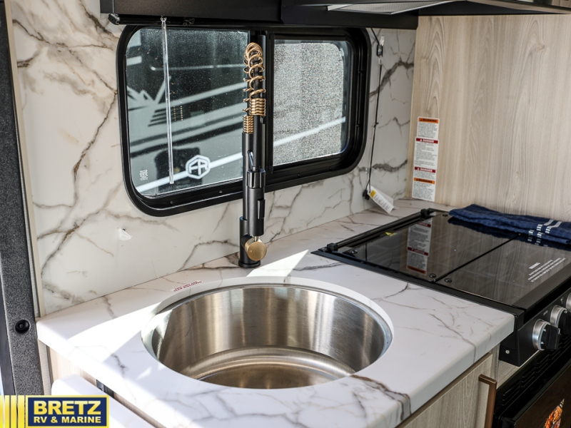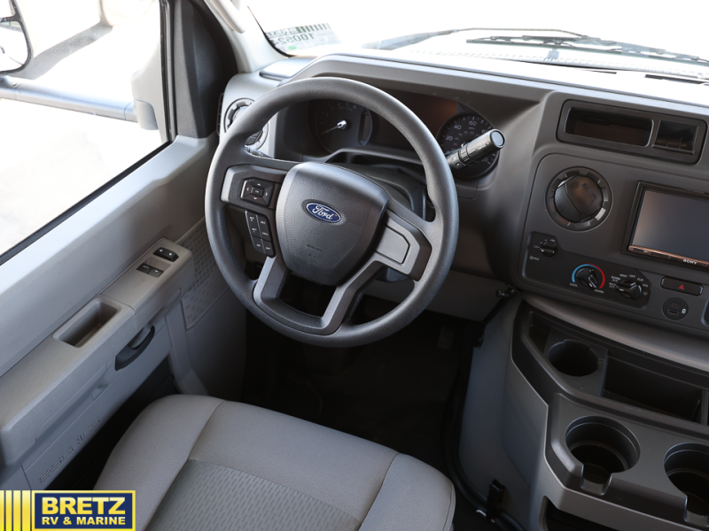 With any Entrada Class C gas motorhome from EAST TO WEST, the construction consists of a one-piece painted fiberglass front cap, a TPO roof membrane, and 2" Azdel composite sidewalls for added durability. There are rotocast exterior storage compartments with slam latch doors, along with an exterior LP Quick Connect, and a power awning with an LED light strip. You will also find rear and sideview cameras to help make maneuvering and parking your RV easier than ever. Inside, you'll feel right at home with soft close hardwood cabinet doors and drawers, a high-altitude tankless water heater, plus a 12V smart TV and USB ports to keep your electronics charged up!
