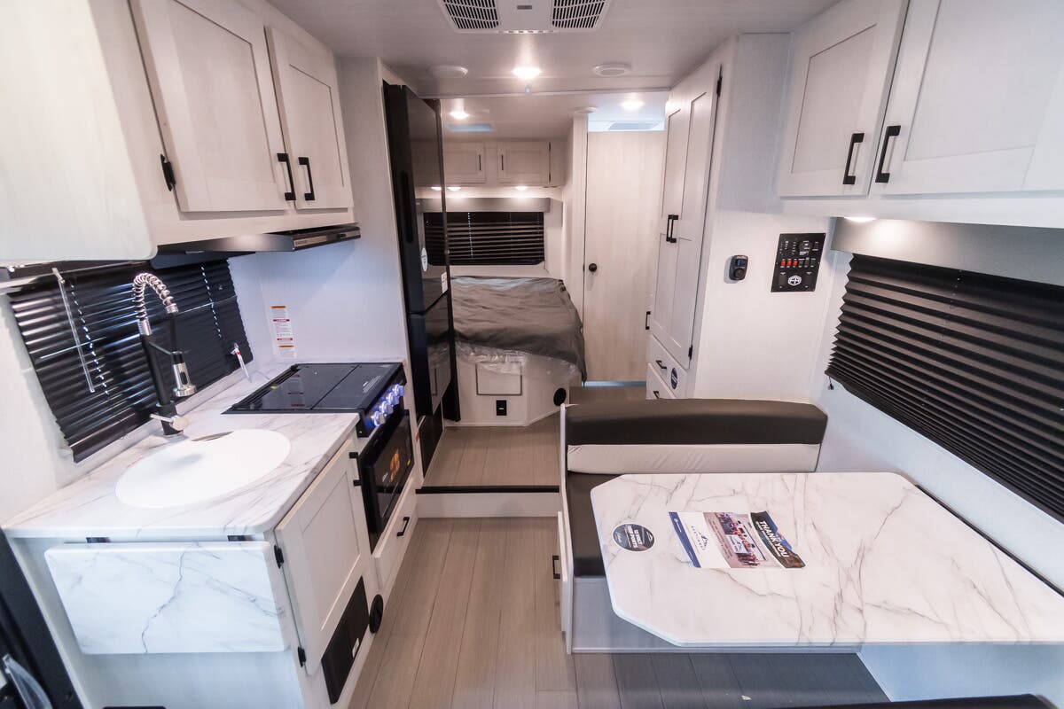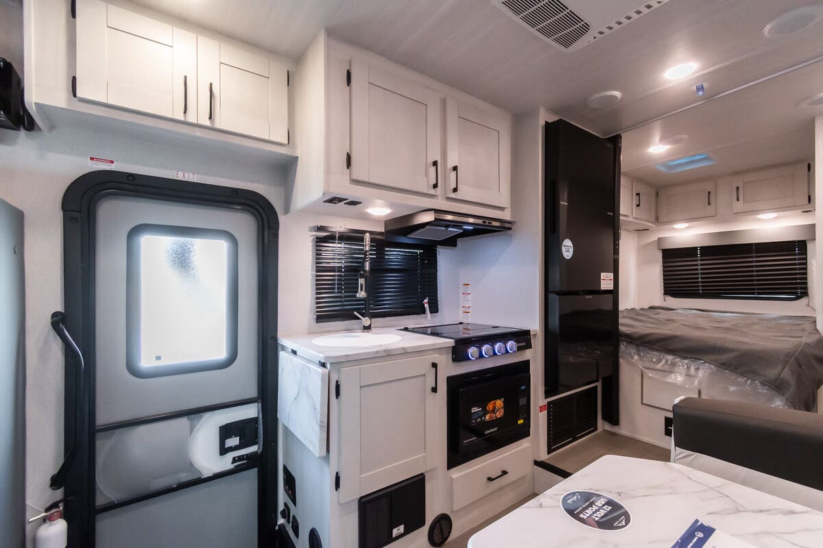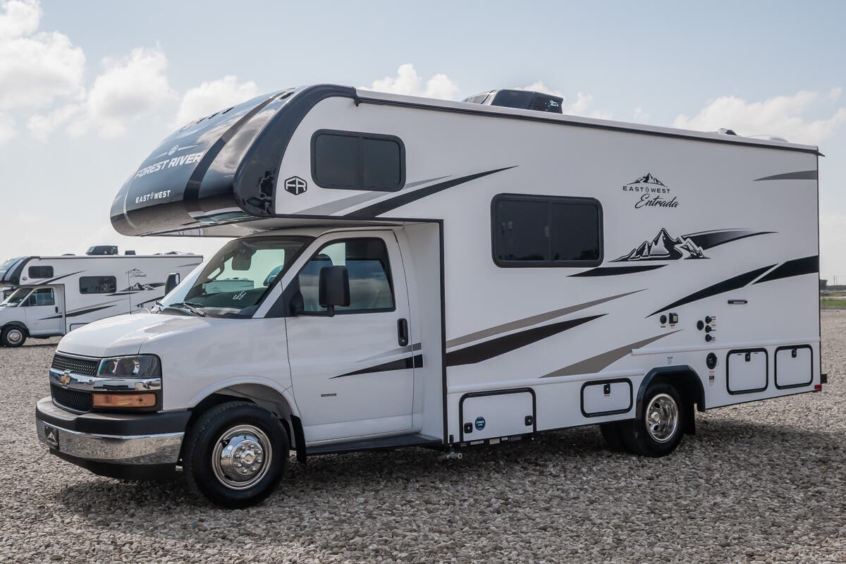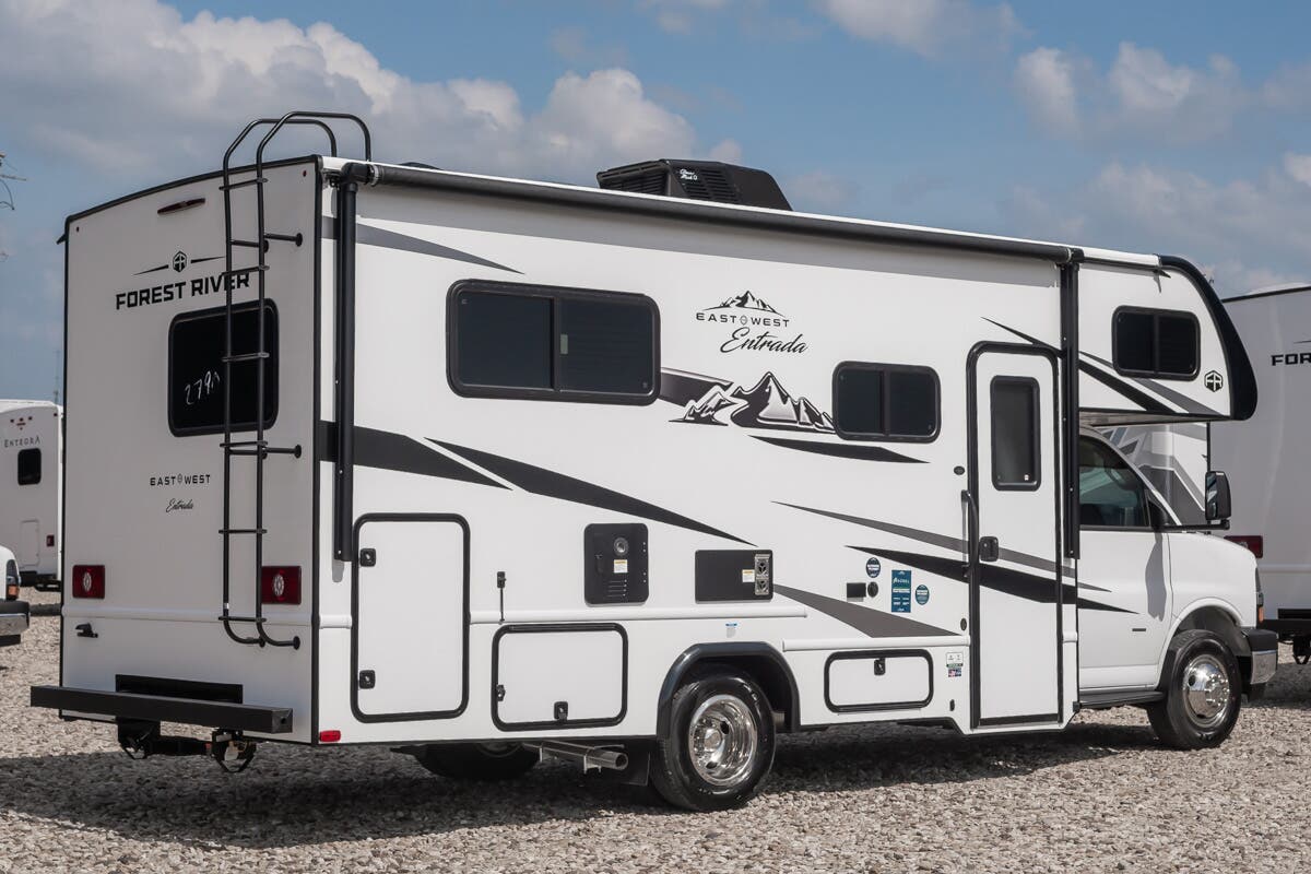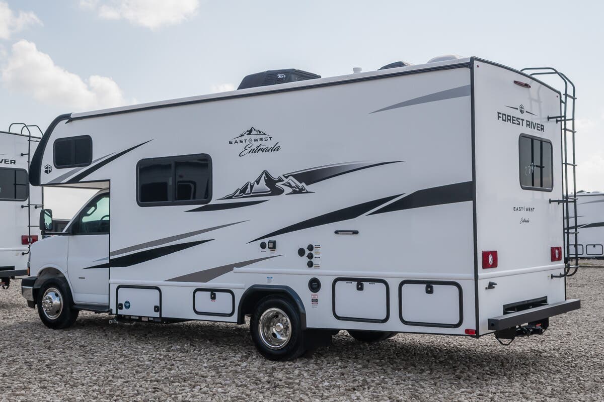 With any Entrada Class C gas motorhome from EAST TO WEST, the construction consists of an automotive painted fiberglass front cap, a Dicor DiFlex ll TPO roof membrane, and Azdel composite sidewalls for added durability. Some of the Entrada value package features include 12V tank heaters to camp during the cooler months, the Winegard Air 360+, plus backup and sideview cameras with a monitor for safety on and off the road. The interior offers a 7-foot interior height for a spacious feel, and 12V USB charge ports will keep your electronics powered up. Choose an Entrada for its tasteful design, attention to detail, bright interior and affordable price-point!