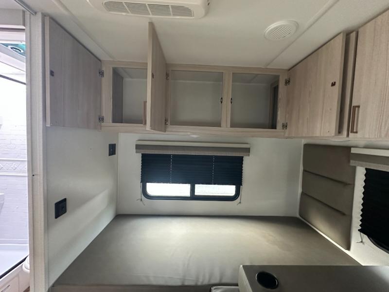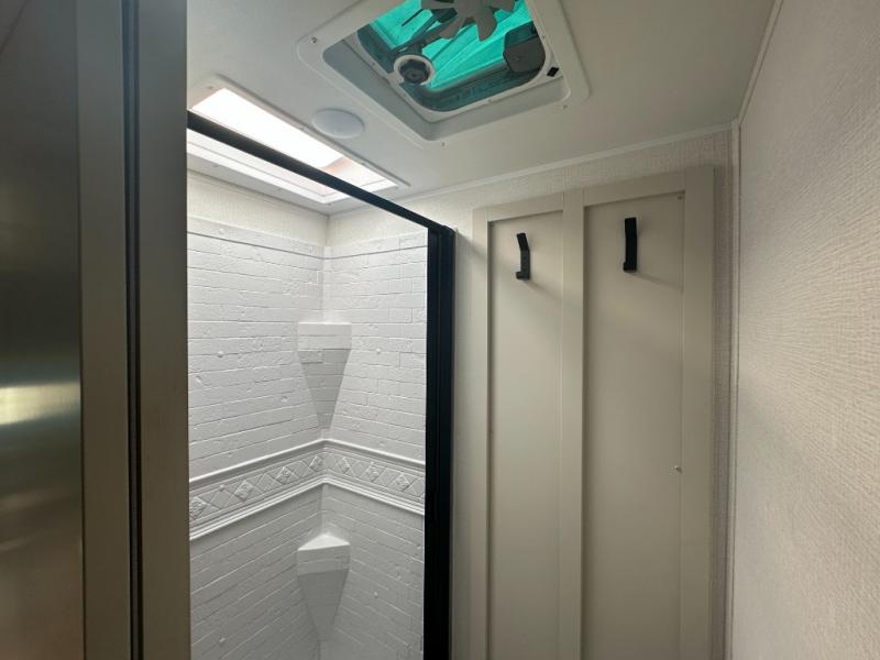 This coach is perfect for traveling with a friend or honey since there are two twin beds that can convert to a king-size bed if you choose! There is a 62" sofa and 42" x 68" booth dinette in the main living area that can double as seating and sleeping space, plus there is a bunk over cab for the little ones. Once you are fully rested, head to the kitchen to prepare a delicious breakfast feast with the convection microwave and cooktop. Use the double sink to clean up, and the 10.7-cubic foot refrigerator to keep your perishables fresh. You can even add some extra prep space to this area by using the countertop extension.