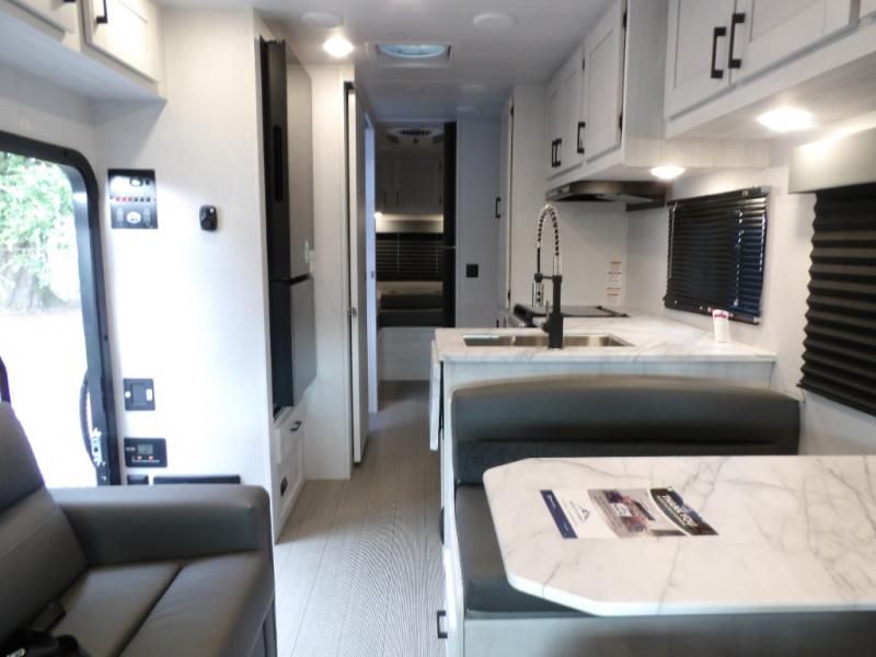 With any Entrada Class C gas motorhome from EAST TO WEST, the construction consists of an automotive painted fiberglass front cap, a Dicor DiFlex ll TPO roof membrane, and Azdel composite sidewalls for added durability. Some of the Entrada value package features include 12V tank heaters to camp during the cooler months, the Winegard Air 360+, plus backup and sideview cameras with a monitor for safety on and off the road. The interior offers a 7-foot interior height for a spacious feel, and 12V USB charge ports will keep your electronics powered up. Choose an Entrada for its tasteful design, attention to detail, bright interior and affordable price-point!