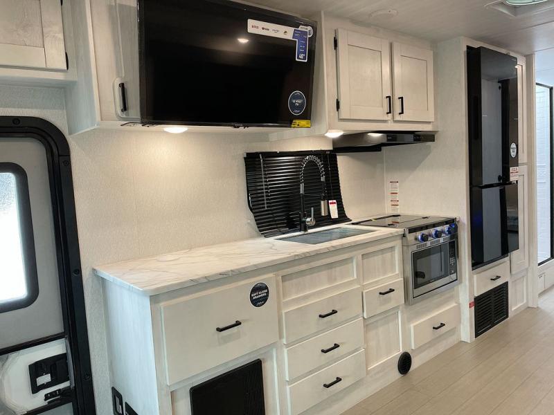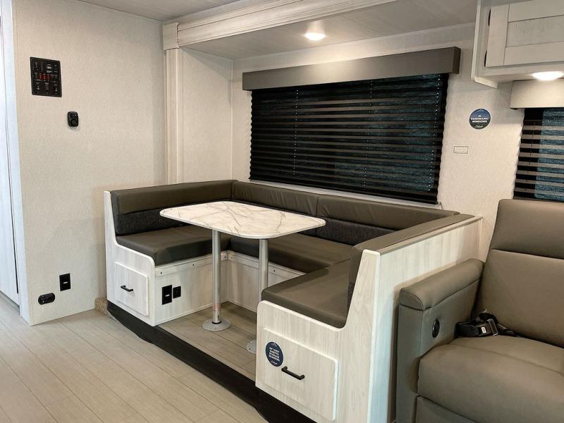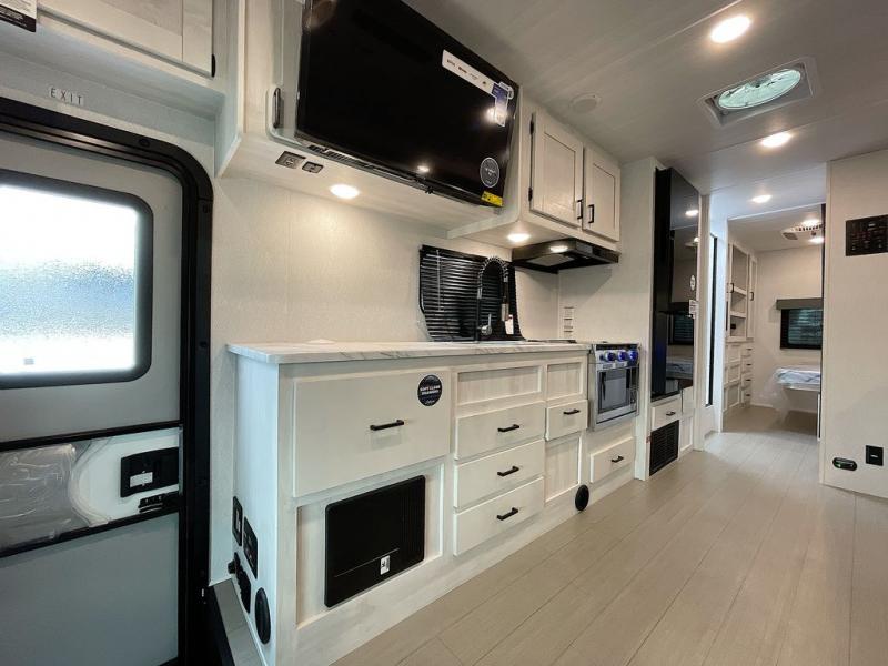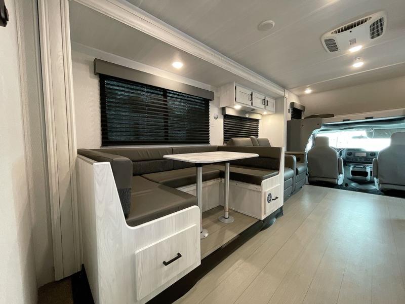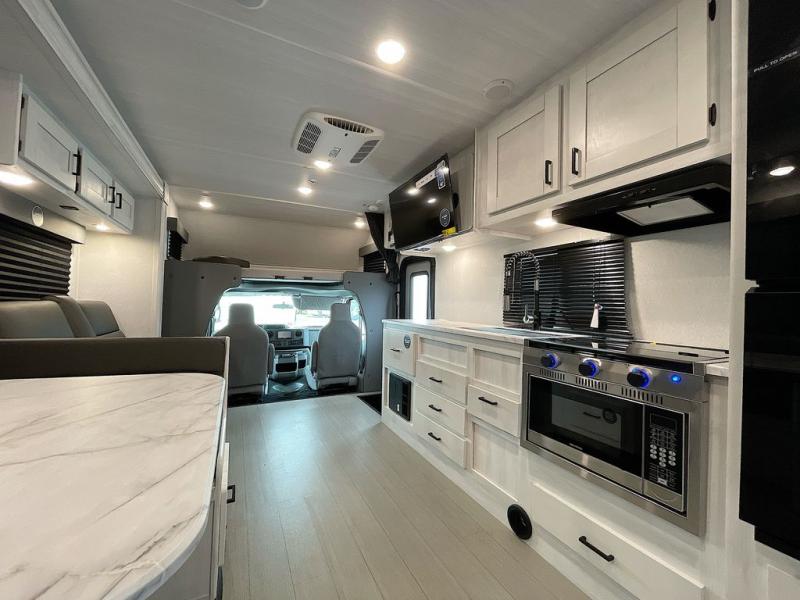 With any Entrada Class C gas motorhome from EAST TO WEST, the construction consists of an automotive painted fiberglass front cap, a Dicor DiFlex ll TPO roof membrane, and Azdel composite sidewalls for added durability. Some of the Entrada value package features include 12V tank heaters to camp during the cooler months, the Winegard Air 360+, plus backup and sideview cameras with a monitor for safety on and off the road. The interior offers a 7-foot interior height for a spacious feel, and 12V USB charge ports will keep your electronics powered up. Choose an Entrada for its tasteful design, attention to detail, bright interior and affordable price-point!