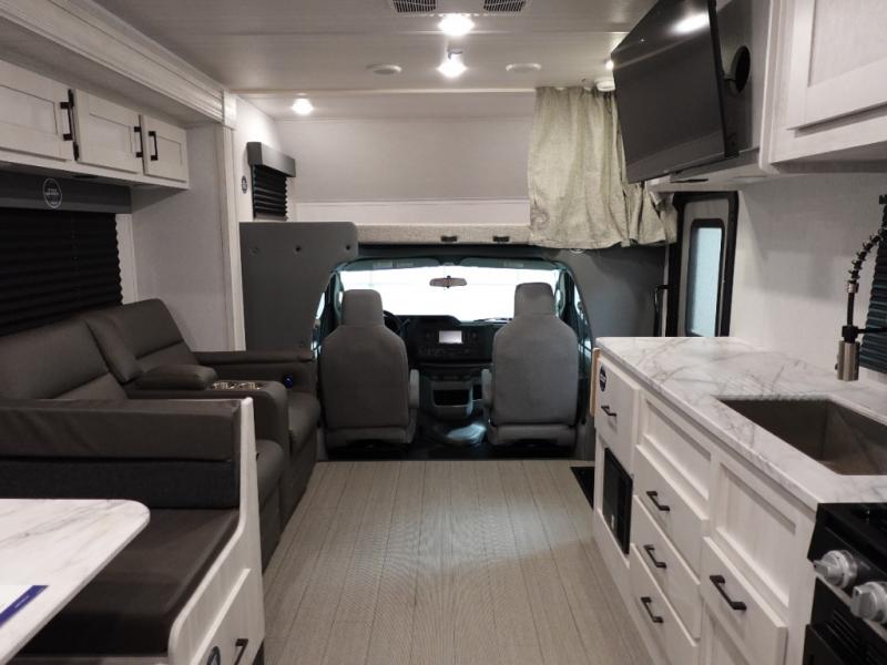 With any Entrada Class C gas motorhome from EAST TO WEST, the construction consists of an automotive painted fiberglass front cap, a Dicor DiFlex ll TPO roof membrane, and Azdel composite sidewalls for added durability. Some of the Entrada value package features include 12V tank heaters to camp during the cooler months, the Winegard Air 360+, plus backup and sideview cameras with a monitor for safety on and off the road. The interior offers a 7-foot interior height for a spacious feel, and 12V USB charge ports will keep your electronics powered up. Choose an Entrada for its tasteful design, attention to detail, bright interior and affordable price-point!