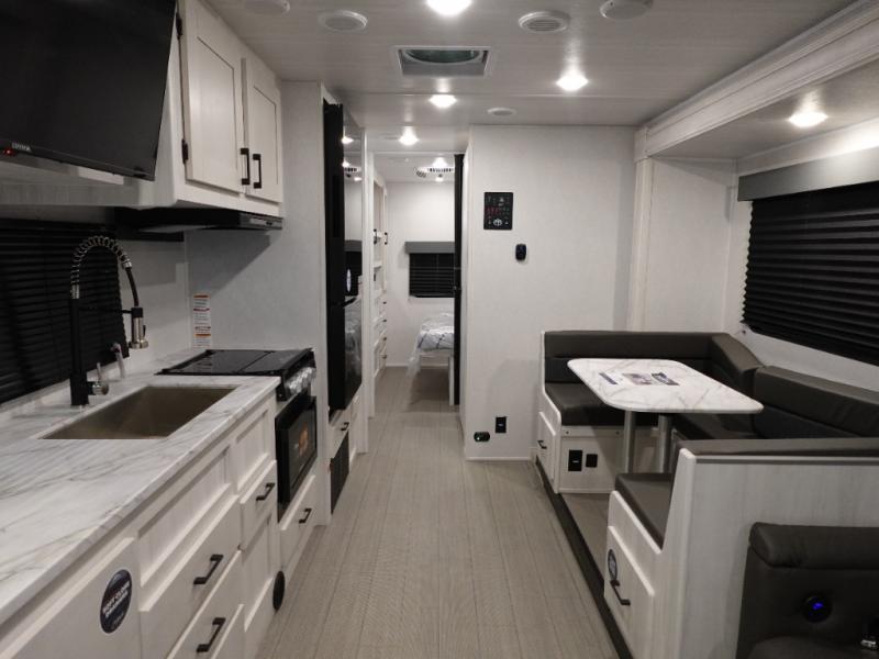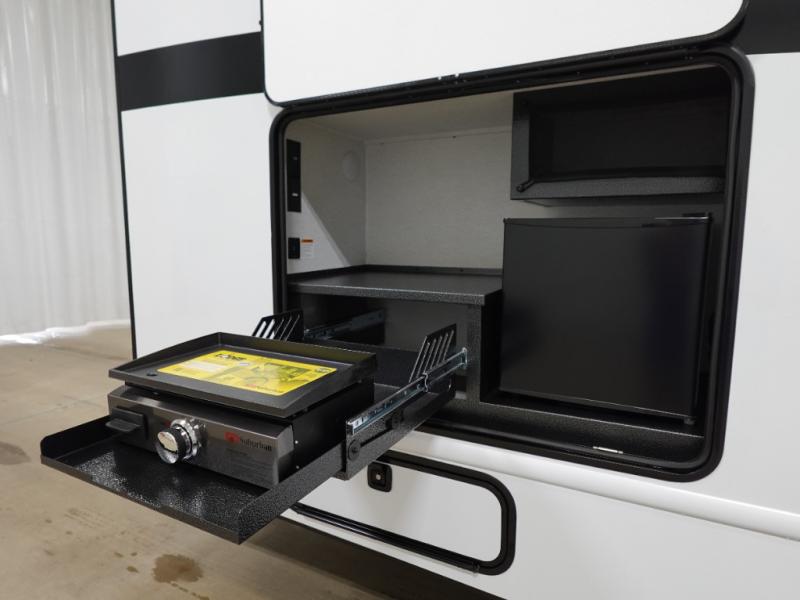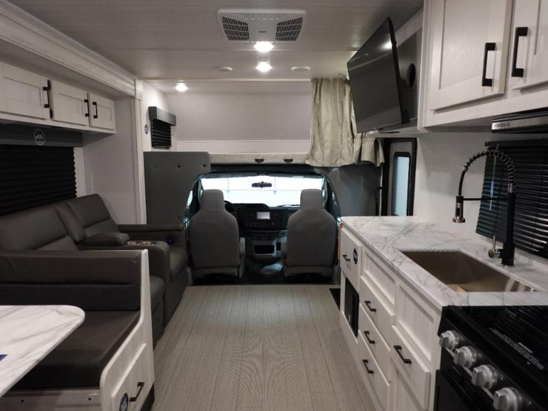 With any Entrada Class C gas motorhome from EAST TO WEST, the construction consists of an automotive painted fiberglass front cap, a Dicor DiFlex ll TPO roof membrane, and Azdel composite sidewalls for added durability. Some of the Entrada value package features include 12V tank heaters to camp during the cooler months, the Winegard Air 360+, plus backup and sideview cameras with a monitor for safety on and off the road. The interior offers a 7-foot interior height for a spacious feel, and 12V USB charge ports will keep your electronics powered up. Choose an Entrada for its tasteful design, attention to detail, bright interior and affordable price-point!