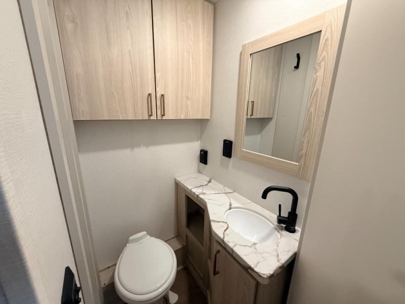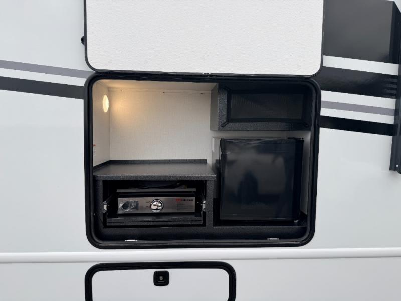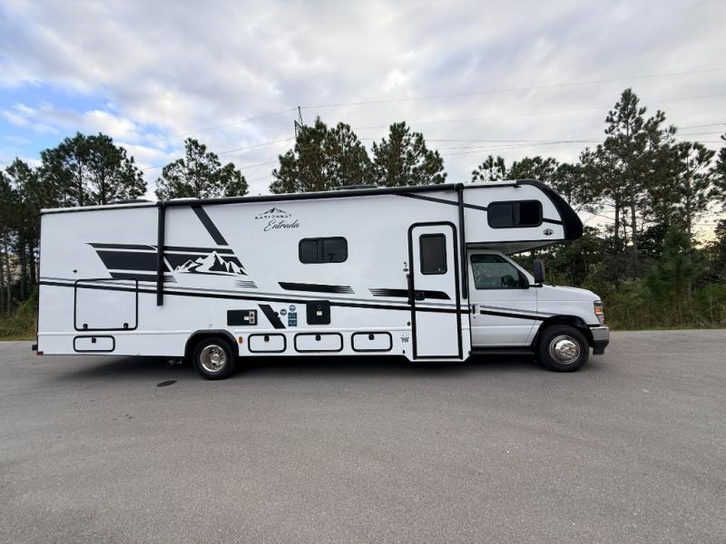 With any Entrada Class C gas motorhome from EAST TO WEST, the construction consists of a one-piece painted fiberglass front cap, a TPO roof membrane, and 2" Azdel composite sidewalls for added durability. There are rotocast exterior storage compartments with slam latch doors, along with an exterior LP Quick Connect, and a power awning with an LED light strip. You will also find rear and sideview cameras to help make maneuvering and parking your RV easier than ever. Inside, you'll feel right at home with soft close hardwood cabinet doors and drawers, a high-altitude tankless water heater, plus a 12V smart TV and USB ports to keep your electronics charged up!