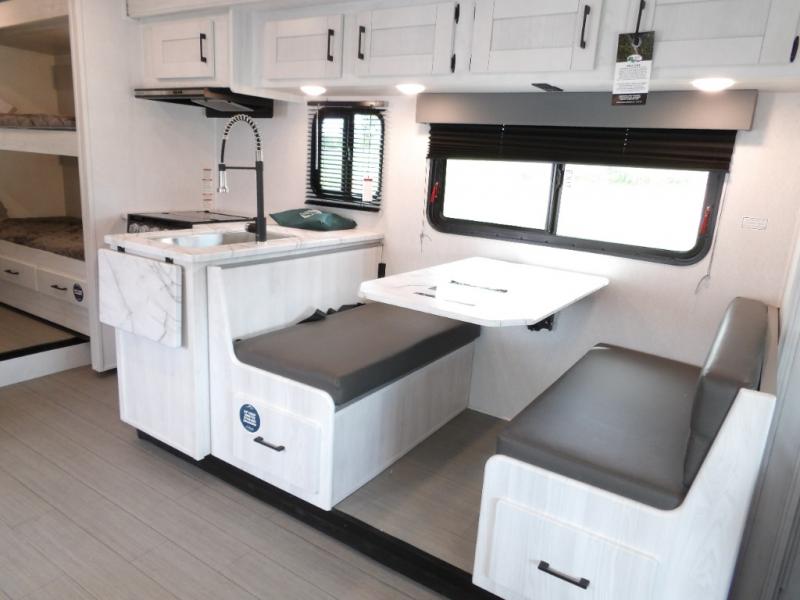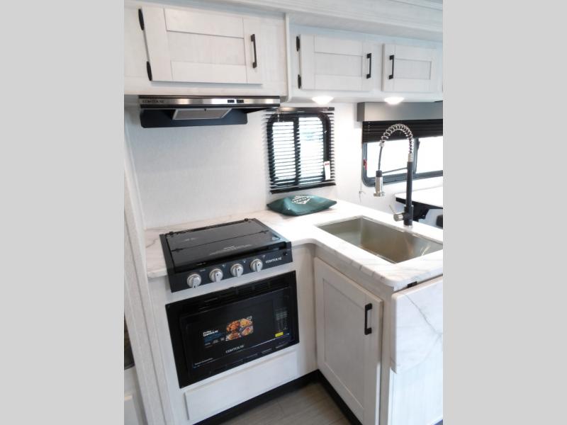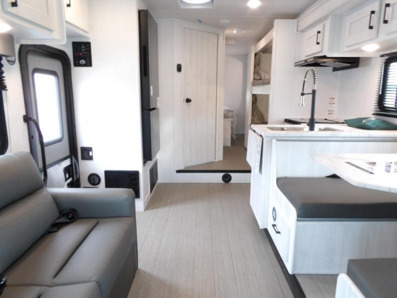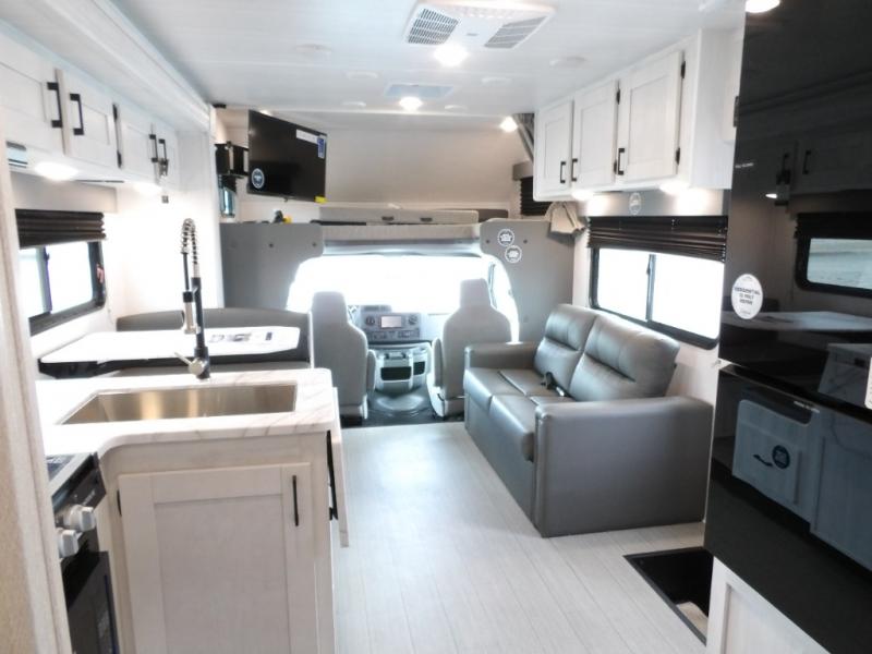 With any Entrada Class C gas motorhome from EAST TO WEST, the construction consists of an automotive painted fiberglass front cap, a Dicor DiFlex ll TPO roof membrane, and Azdel composite sidewalls for added durability. Some of the Entrada value package features include 12V tank heaters to camp during the cooler months, the Winegard Air 360+, plus backup and sideview cameras with a monitor for safety on and off the road. The interior offers a 7-foot interior height for a spacious feel, and 12V USB charge ports will keep your electronics powered up. Choose an Entrada for its tasteful design, attention to detail, bright interior and affordable price-point!