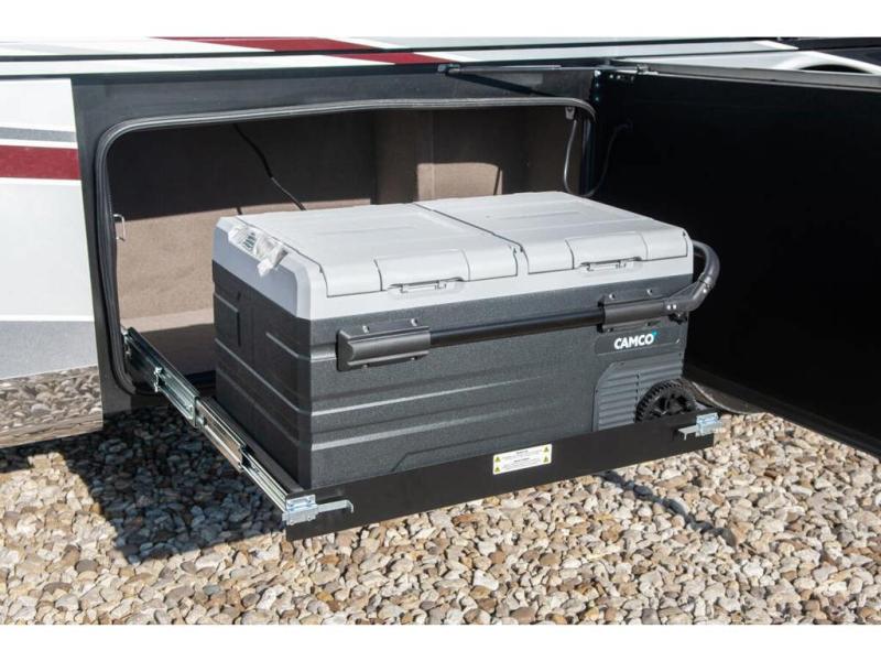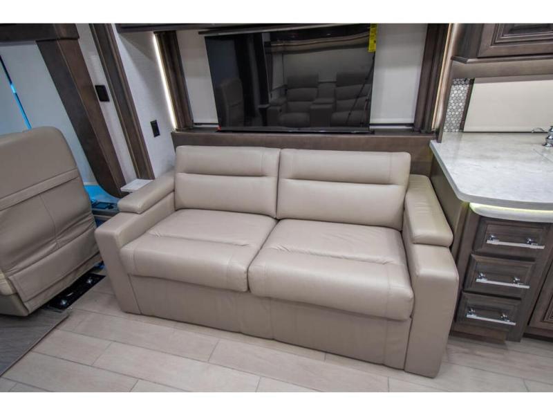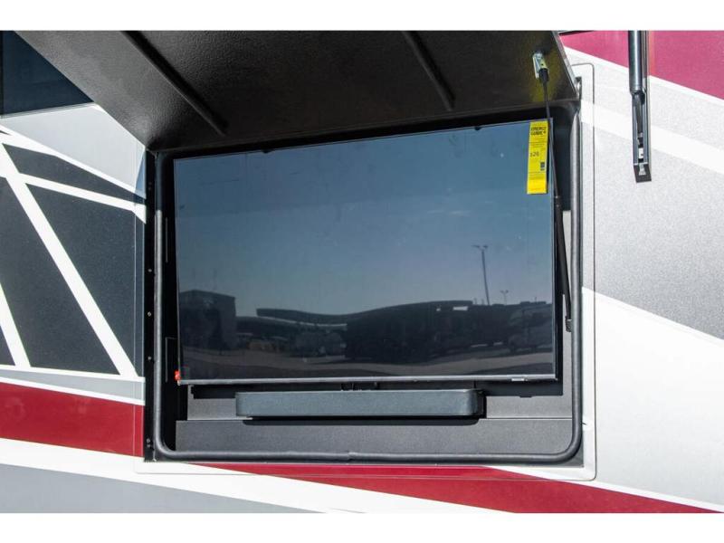Create unforgettable memories in the comfort of this motorhome! Enjoy a refreshing time in the spacious rear bathroom where you will find a 36” x 23” shower, medicine cabinets, and a large wardrobe, perfect for organizing your best outfits, this unit also has a half bath adding convenience for those times when guests are around. The private bedroom boasts a wardrobe with drawers, a 43” TV and an ample king bed, great for a good night’s sleep. Cooking will be your favorite activity due to all the facilities this RV offers, like the residential refrigerator, pantry, microwave, overhead cabinets, and pantry for dry goods. A 74” hide-a-bed sofa is provided adding more sleep space and entertainment will continue outside thanks to the 43” TV.