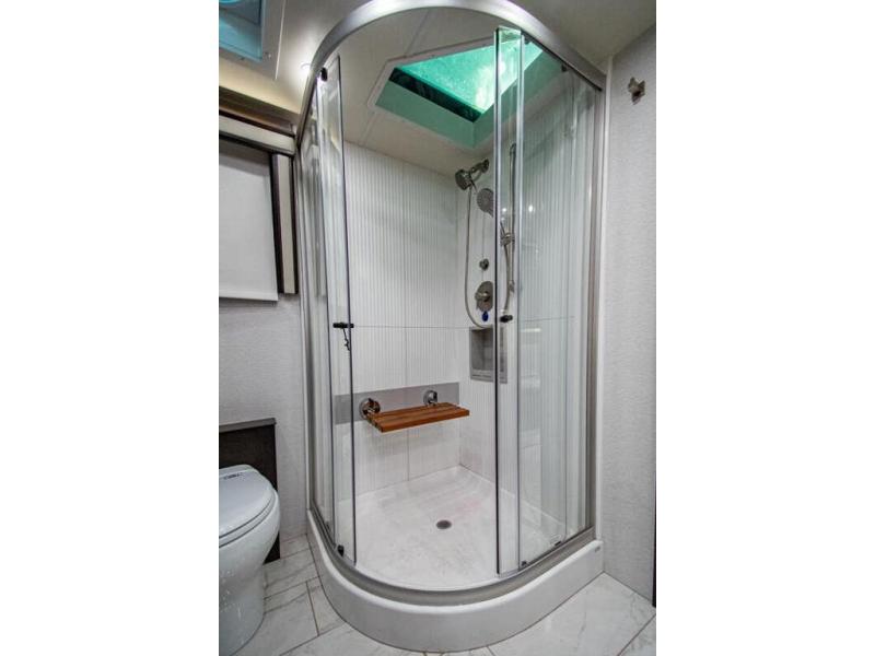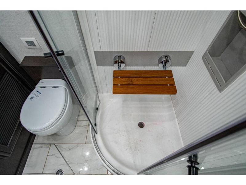 With any Aspire Class A diesel motorhome by Entegra Coach you will enjoy a smooth ride thanks to the Spartan K2 raised-rail chassis, the independent front suspension, and the E-Z Steer adjustable power steering assist. The leather captain's seats include 6-way power adjustment, lumbar and footrest functions that will have you sitting in the lap of luxury, plus there is a Valid Truline air leveling system with auxiliary air compressor for a smooth ride and easy set up. You'll find many high-end features inside, including a Teakwood shower seat in the bath, a decorative ceiling feature, solid surface countertops with dimmable LED accent lighting, and premium Crown Compass furniture. The Aspire also features exterior amenities that will make being on the road easier than ever. The push-button, power-unlatching baggage doors let you unload in record-time, and the Girard awnings will provide tons of shade to relax outdoors. A few new features you are sure to enjoy include a portable Shark vacuum cleaner, a Splendide washer and dryer, plus a filtered water dispenser at the kitchen sink!