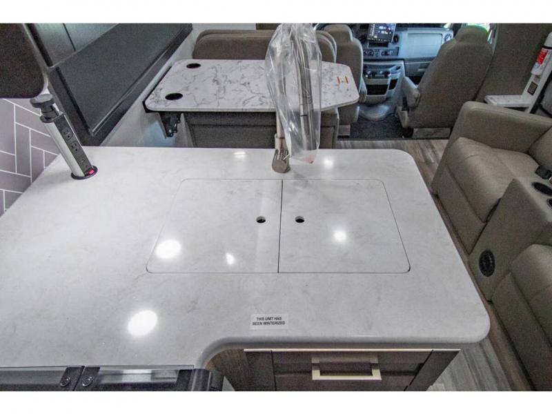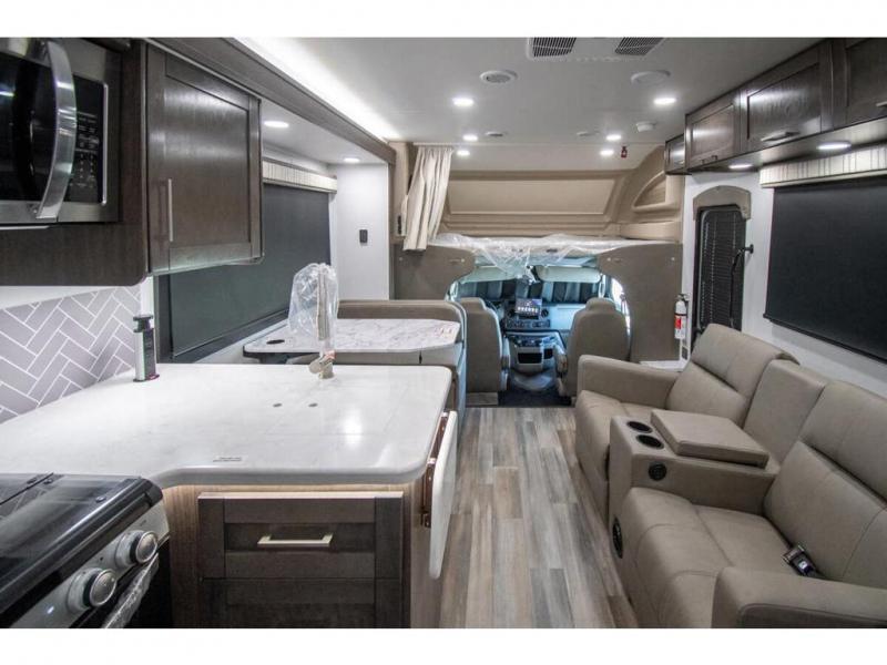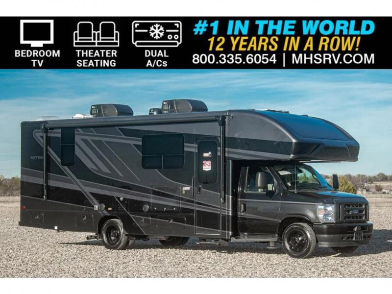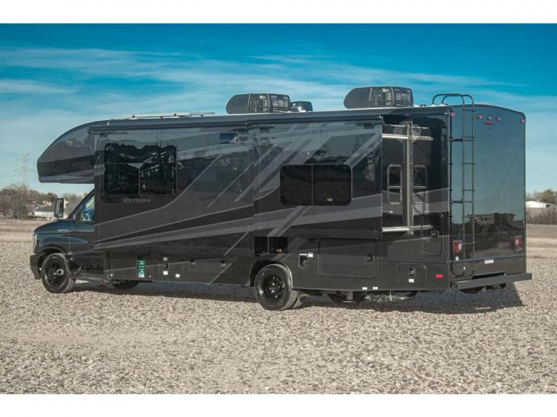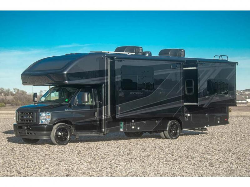 Make one of these Entegra Coach Esteem Class C gas motorhomes your own! The interior design includes solid-surface countertops that pair well with the many technological upgrades. The fully custom-molded ABS surround in the cab area features its signature panoramic window and power shade for a beautiful view while you drive and provide privacy at night. They also come with E-Z Drive Elite which has a computer-balanced driveshaft, Koni FSD shocks, Hellwig helper springs, and a heavy-duty rear stabilizer bar for a smooth ride. Automatic leveling jacks will make set-up a breeze and the electric awning with LED lights will create an outdoor living space where you can relax after unpacking. Inside, you'll enjoy hardwood cabinet doors and drawer fronts, blackout night roller shades, and high-intensity recessed LED ceiling lights to keep your space well lit. There is also a JBL audio system and a BMPRO total coach control system to easily manage your unit's functions!