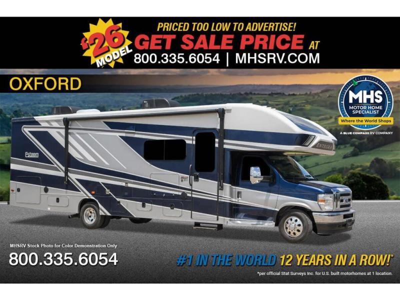 Enjoy a home on wheels with this motorhome! The rear private bedroom has a 60" x 74" queen bed slide to lay your head on at night and dual wardrobes opposite to keep your clothes looking their best. Add the optional TV if you enjoy watching a movie in bed. The separated bathroom makes it easy for one person to freshen up in the 30" x 36" shower while another uses the private toilet and sink. Prepare your best home cooked meals with the Furrion all-in-one cooktop and oven then enjoy them at the booth dinette. The tri-fold sofa offers a comfortable place to relax but it can be switched out for the an optional theater sofa instead. There is also a bunk over cab for more to join in on the fun!