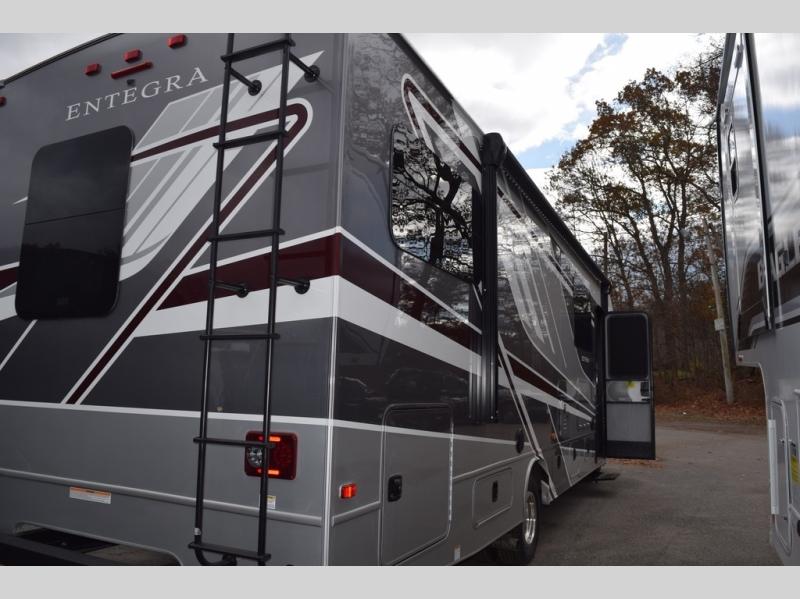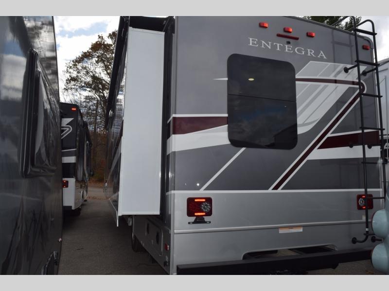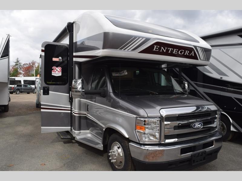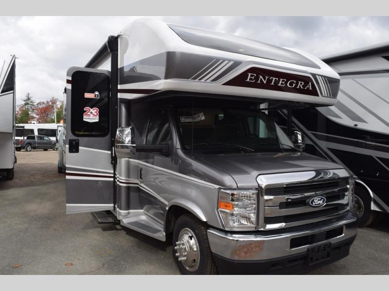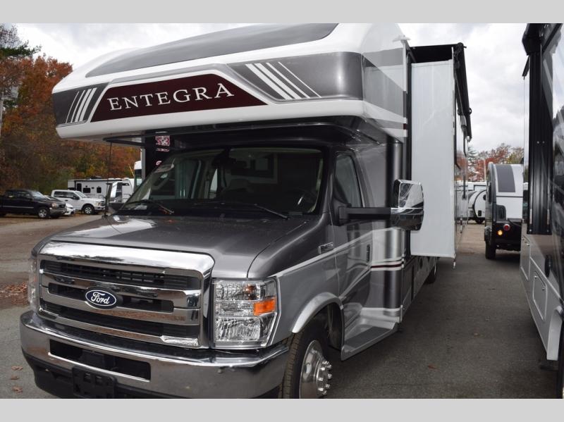 Make one of these Entegra Coach Esteem Class C gas motorhomes your own! The interior design includes solid-surface countertops that pair well with the many technological upgrades. The fully custom-molded ABS surround in the cab area features its signature panoramic window and power shade for a beautiful view while you drive and provide privacy at night. They also come with E-Z Drive Elite which has a computer-balanced driveshaft, Koni FSD shocks, Hellwig helper springs, and a heavy-duty rear stabilizer bar for a smooth ride. Automatic leveling jacks will make set-up a breeze and the electric awning with LED lights will create an outdoor living space where you can relax after unpacking. Inside, you'll enjoy hardwood cabinet doors and drawer fronts, blackout night roller shades, and high-intensity recessed LED ceiling lights to keep your space well lit. There is also a JBL audio system and a BMPRO total coach control system to easily manage your unit's functions!